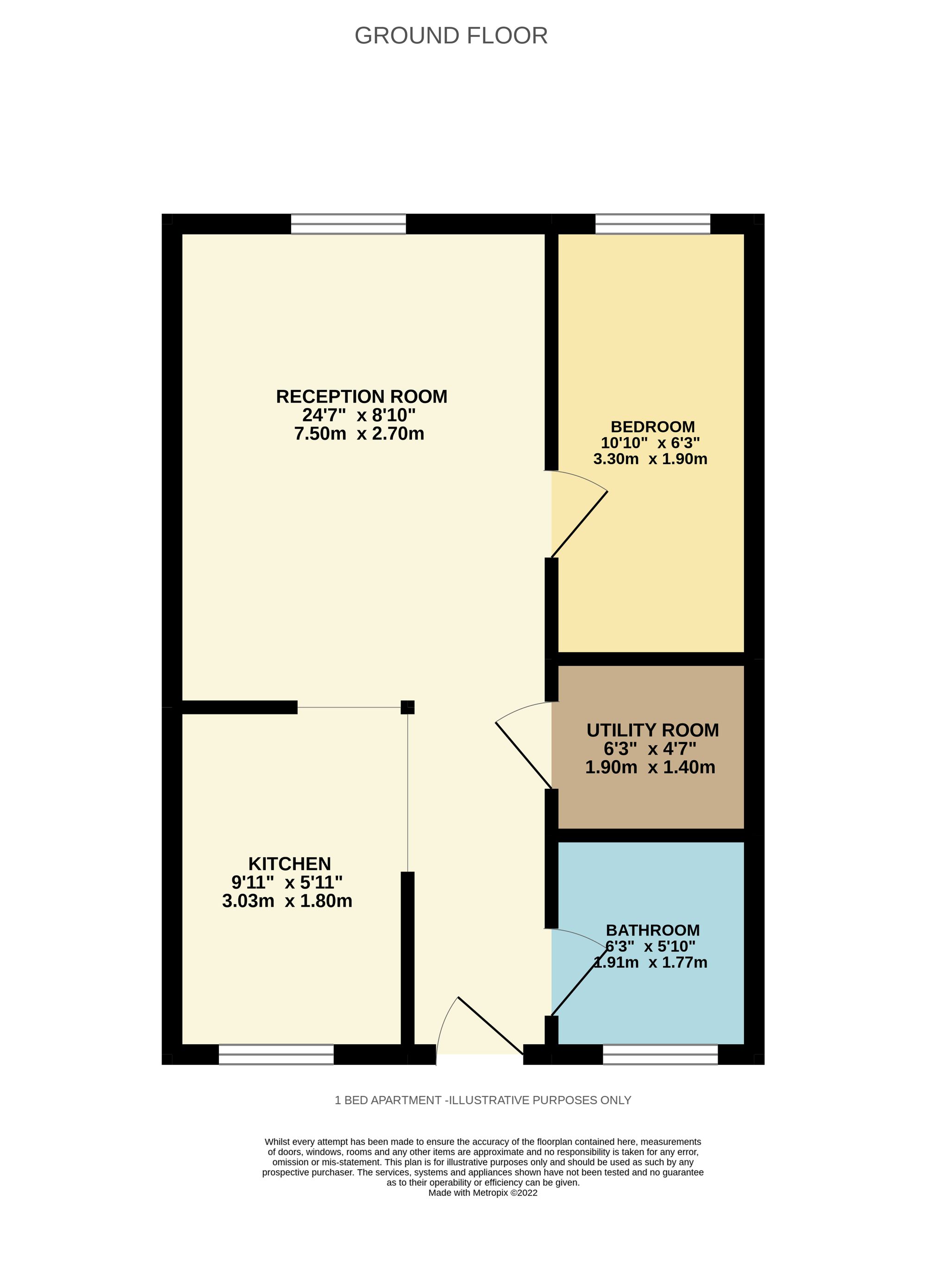 Tenure: Leasehold A one bedroom apartment with garage just a short walk from Rochester Train Station providing direct links into London in just 35 minutes. This property has been recently refurbished and is ‘move in ready’ with an open plan kitchen/living room and separate bedroom. Contact moxy today to arrange you’re viewing. EPC grade C If you wish to proceed with the property we require one weeks holding deposit being £242.30. This is non refundable should you withdraw or fail references 5 week deposit required £1211.54 Lounge 7.5m × 2.7m Bedroom 3.3m x 1.90m EPC Rating: C
