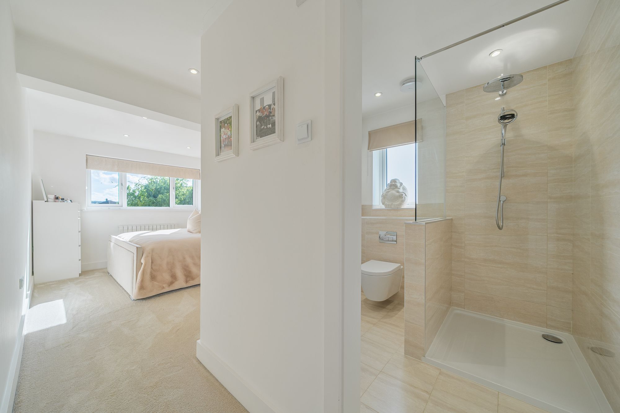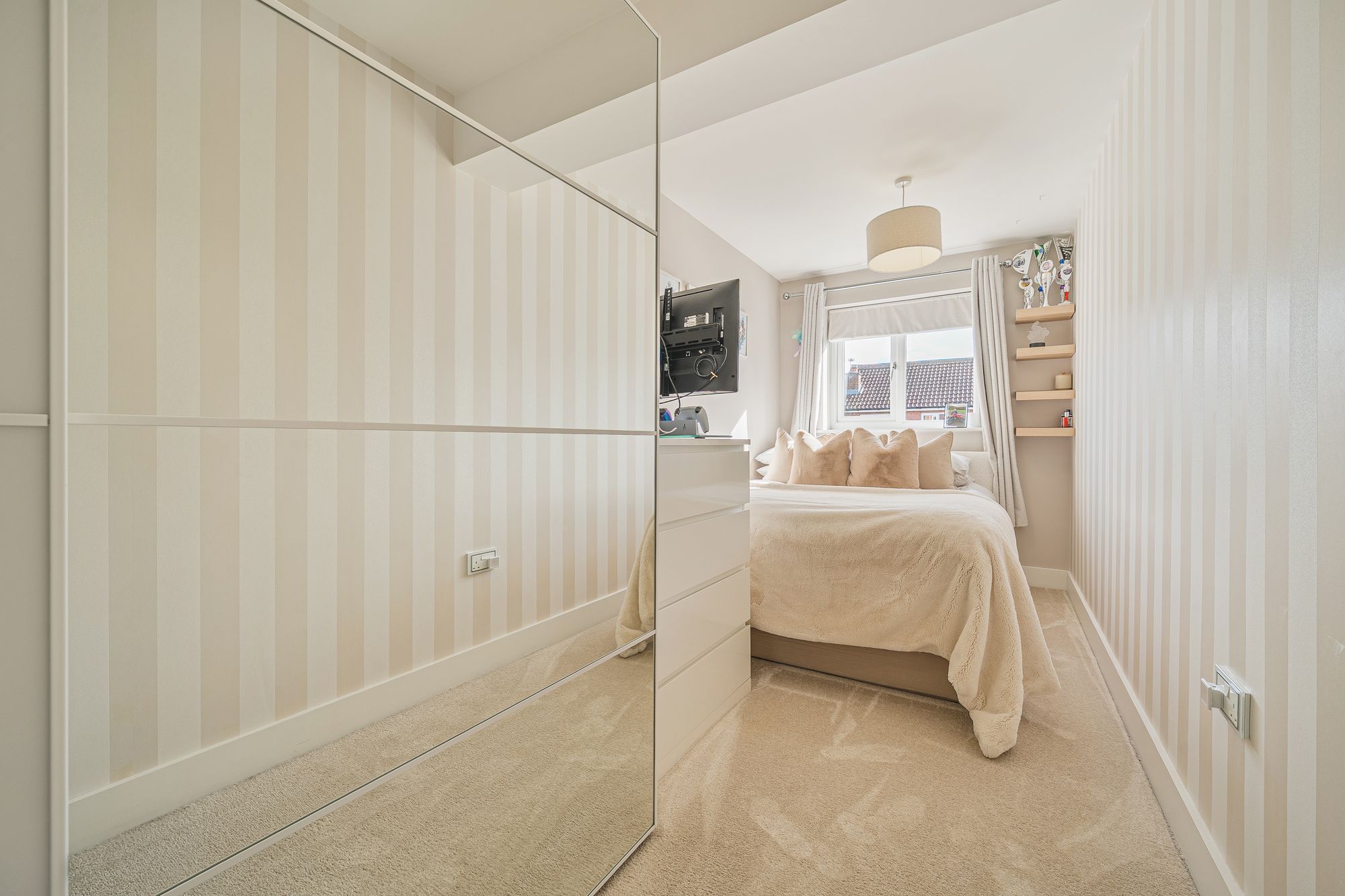 The property continues upstairs where you will find four bedrooms. The principal bedroom is generous in size and had the added benefit of a stylish en-suite added a touch of style and luxury. The three further bedrooms are serviced from the neutrally decorated family bathroom with three-piece suite. With a built in TV, you can enjoy your favourite programs while having a relaxing soak.
