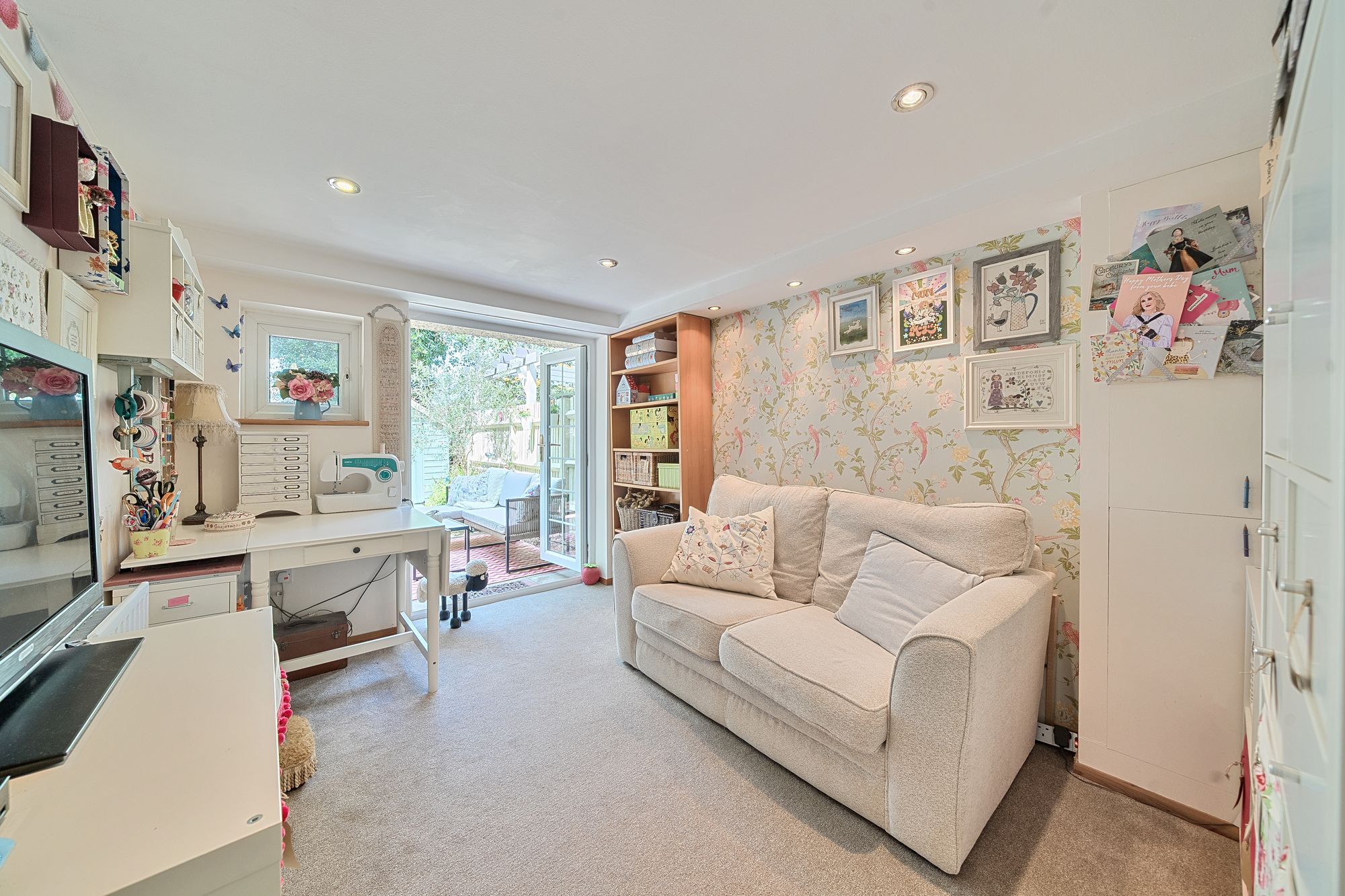 The basement level provides an exceptional amount of living space, featuring a useful utility room with garden access, a convenient WC, and a soundproofed music room/snug. There is even a further living room with direct access to the outdoor patio.