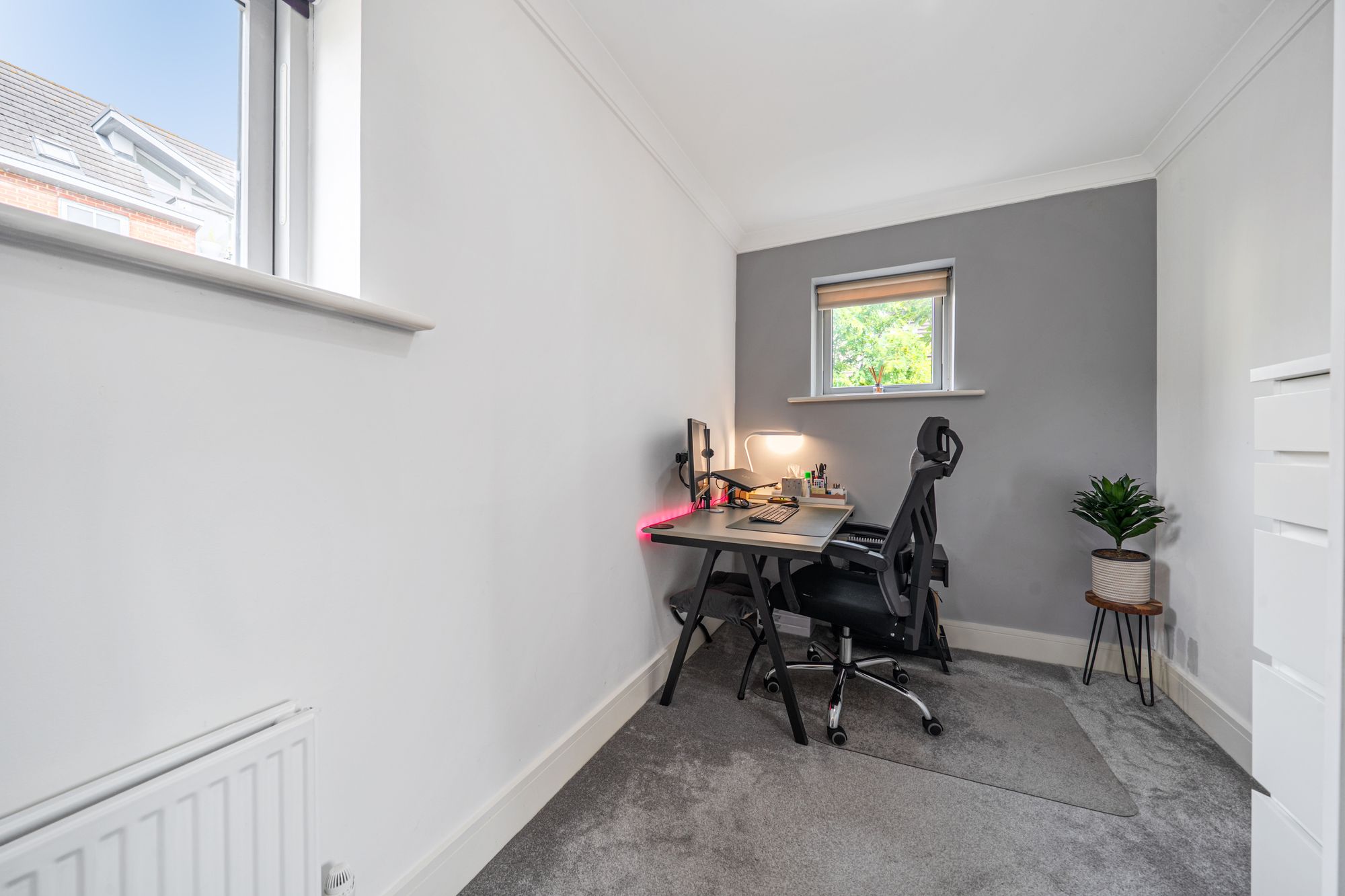 Step inside and you’ll find a clever layout with the ground floor hosting both bedrooms and the modern bathroom. Each bedroom features built-in wardrobes for generous storage, while the bathroom offers a sleek, luxurious finish.