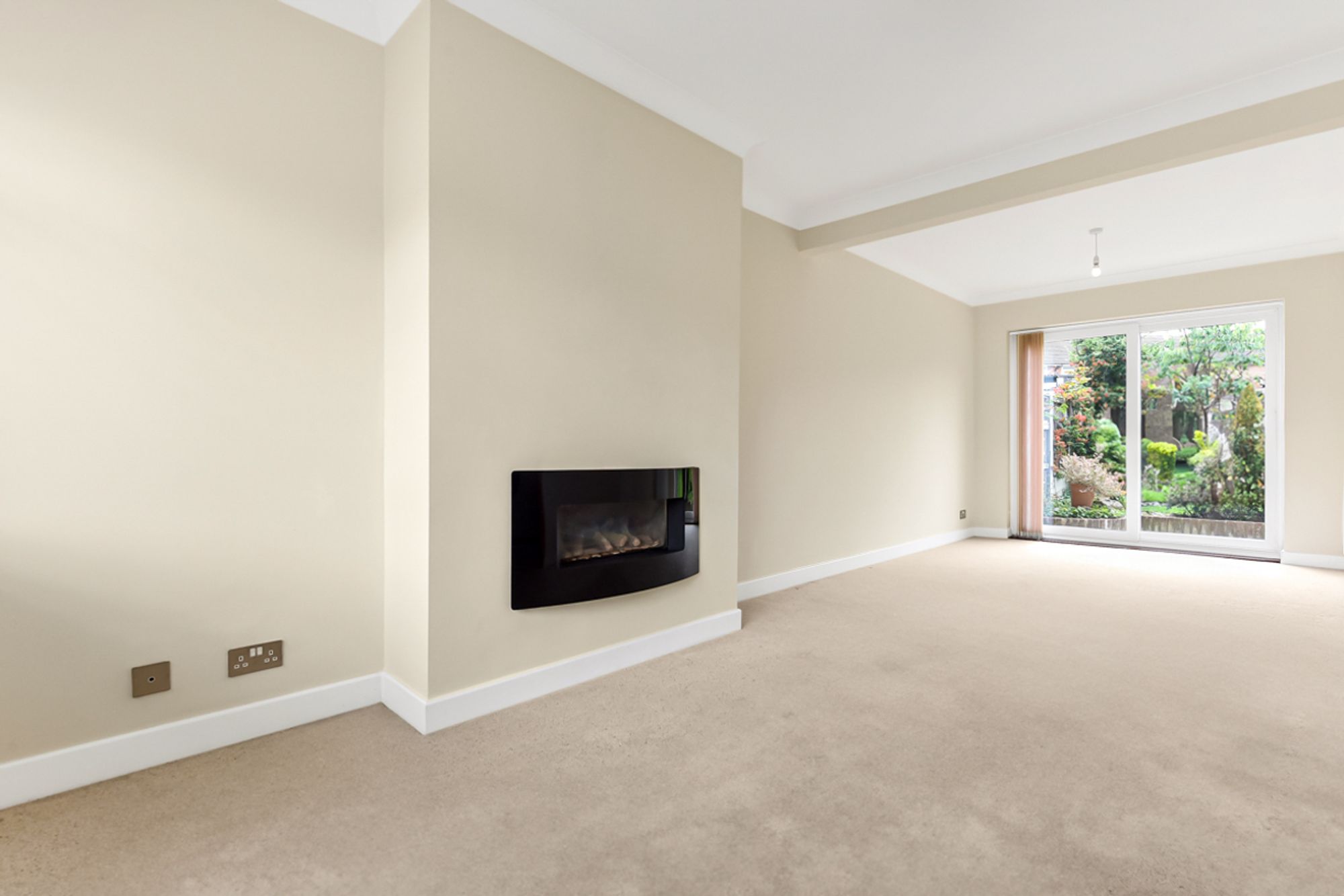 Upon entering the porch and the entrance hall you'll find yourself in the bright hallway with high quality doors and access to the dual-aspect living room. Natural light floods this space from large windows on either side, creating a bright and airy ambiance. The living room seamlessly connects to the rear garden through sliding doors making it an ideal spot for relaxation and entertaining. Imagine enjoying a morning coffee while gazing out at your lush garden.