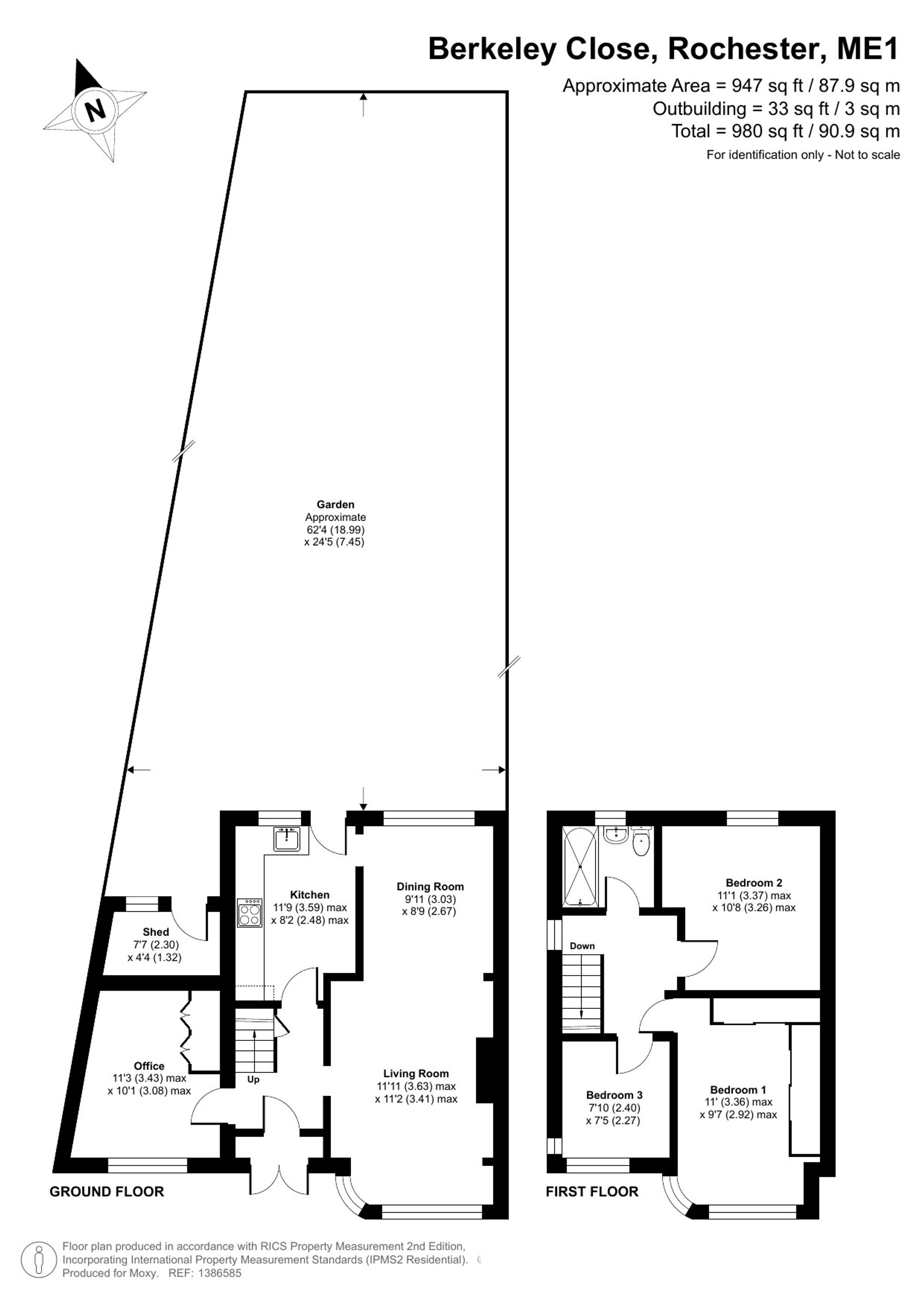 - 62ft X 24ft rear garden