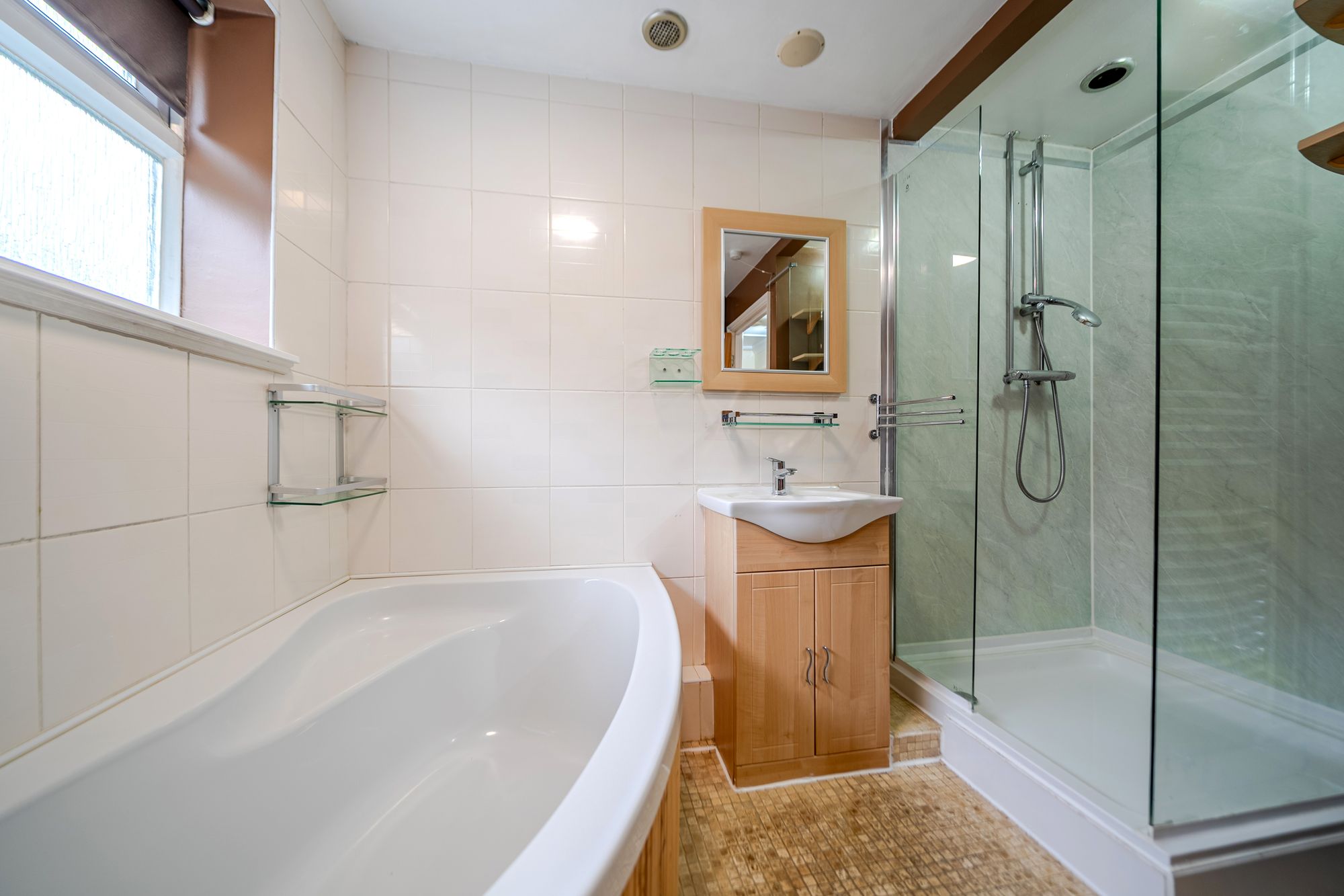 Upstairs are three good sized bedrooms. Two are doubles, while the third works equally well as a child’s room, guest room, or workspace for those working from home. The bathroom is fitted with modern fixtures and designed for straightforward, functional use.