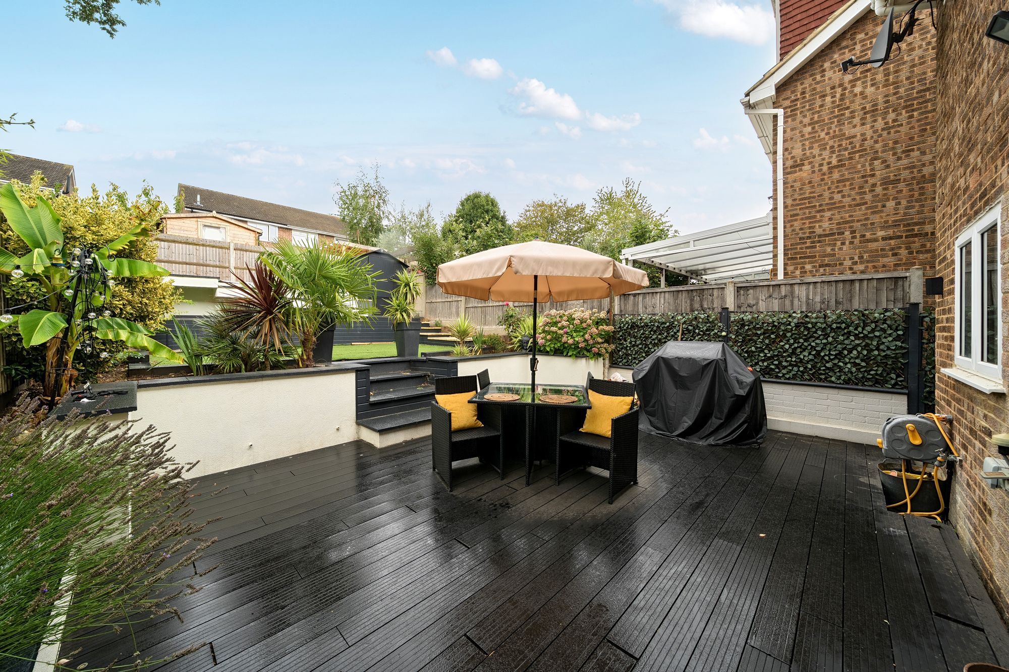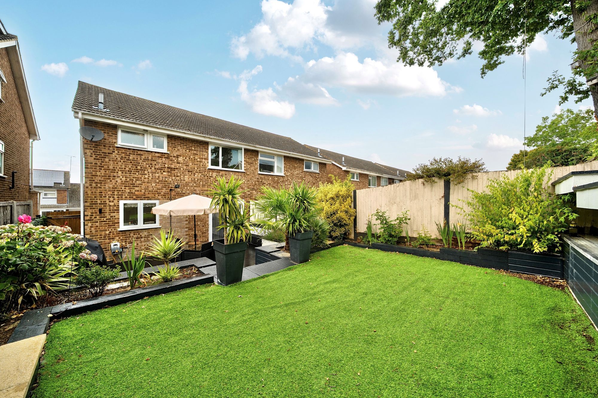 Not to be overlooked and one of the stand out features off the property is the landscaped rear garden. With a south-facing aspect, accessible from the kitchen, adds an additional touch of tranquillity to the property, offering a private and peaceful outdoor space for relaxation or entertaining guests. With a built in swimming pool, artificial lawn and decking area the property caters for all the family whatever the weather!