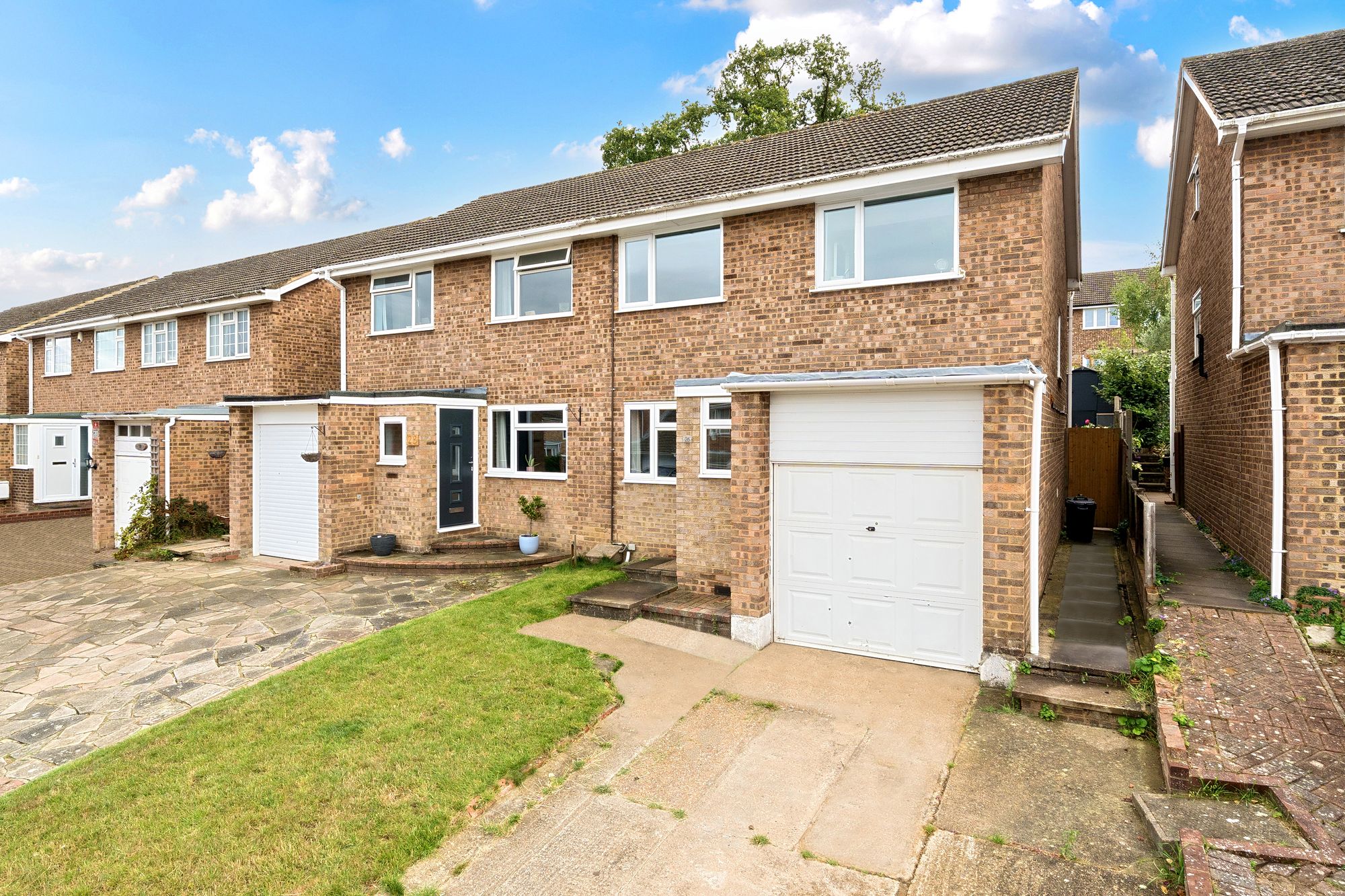 Nestled within the prestigious Cliffe Woods is this stunning, three double bedroom, semi-detached residence boasting a south facing rear garden with swimming pool! Not only that but the property is offered to the market chain free!