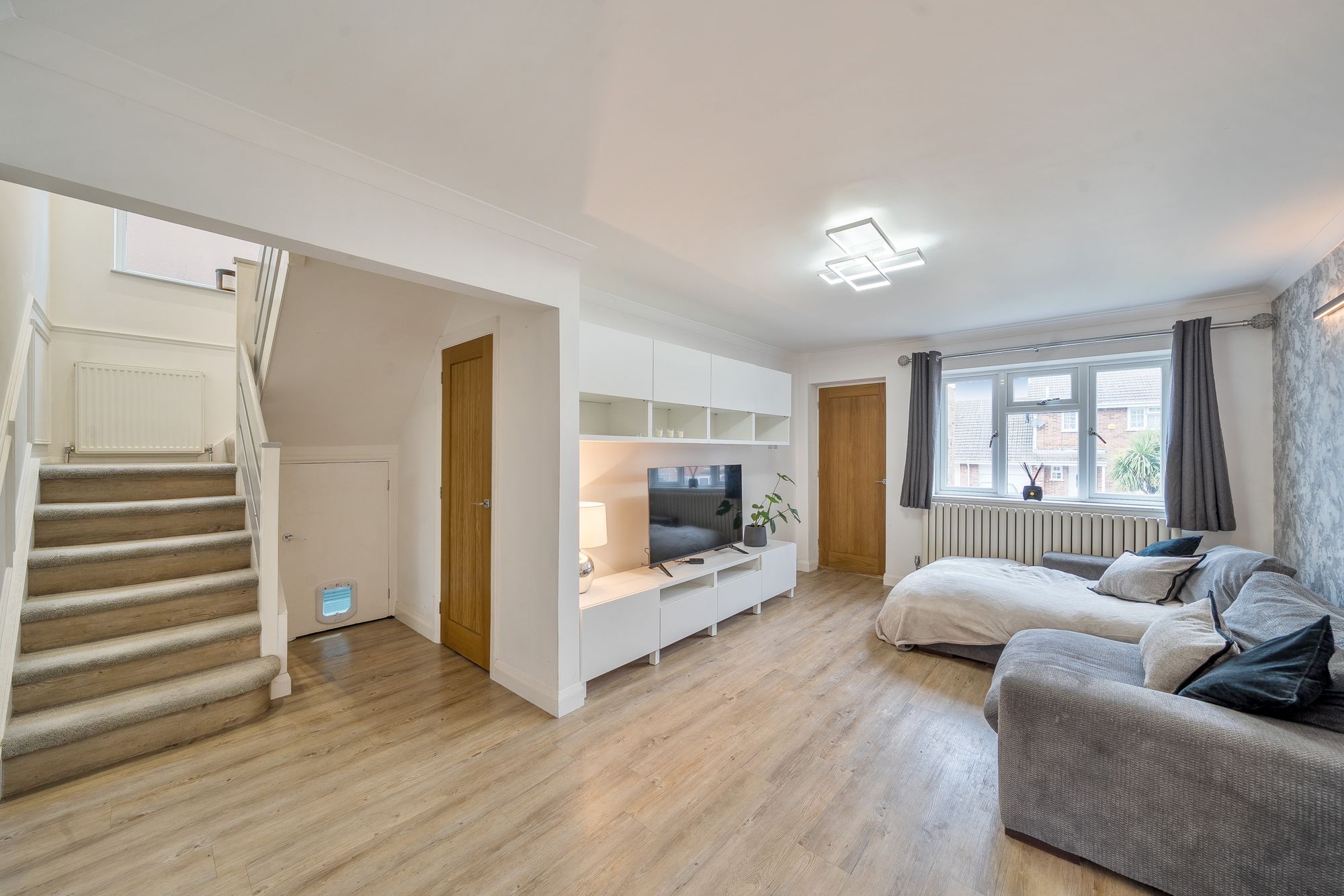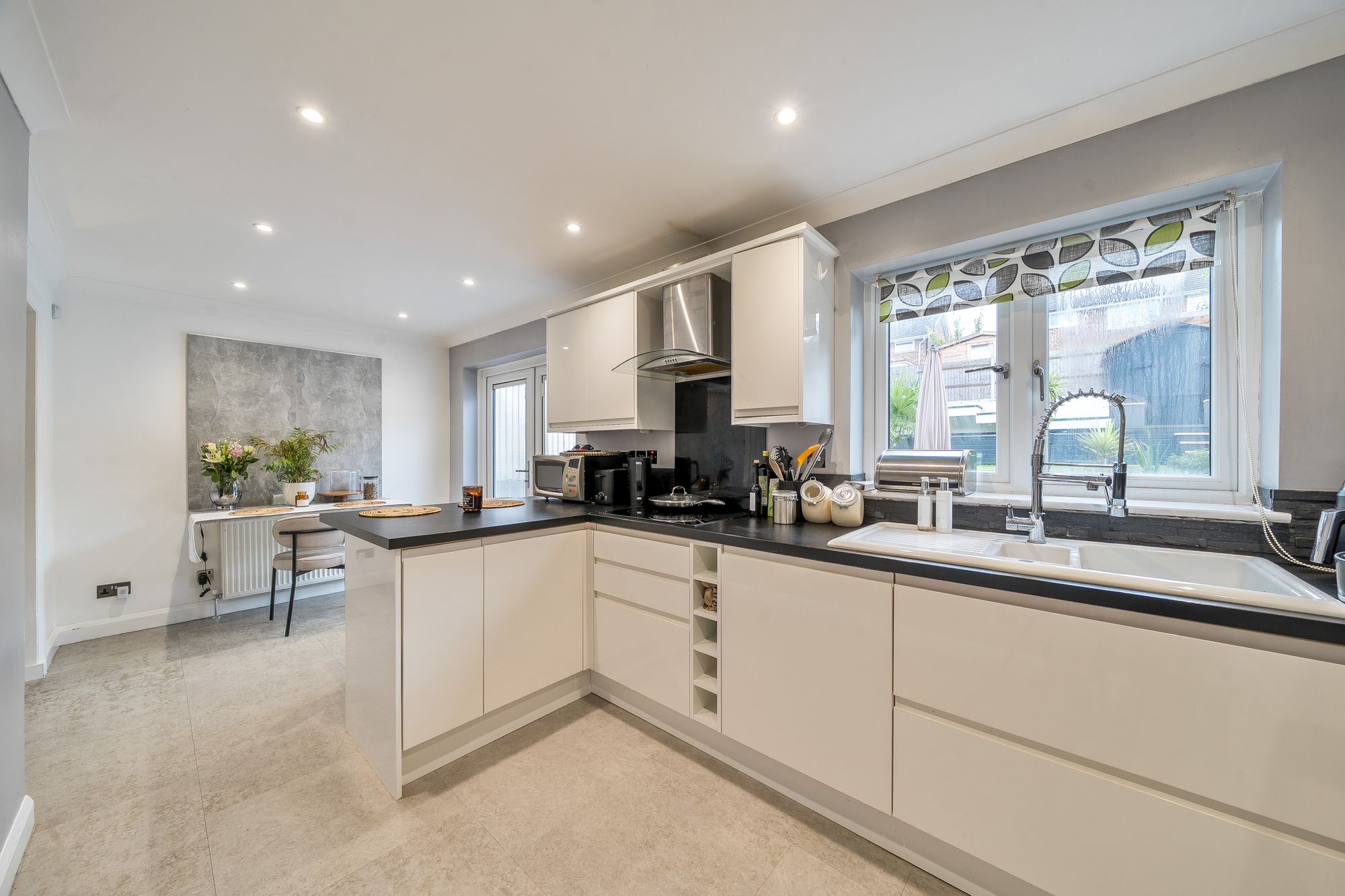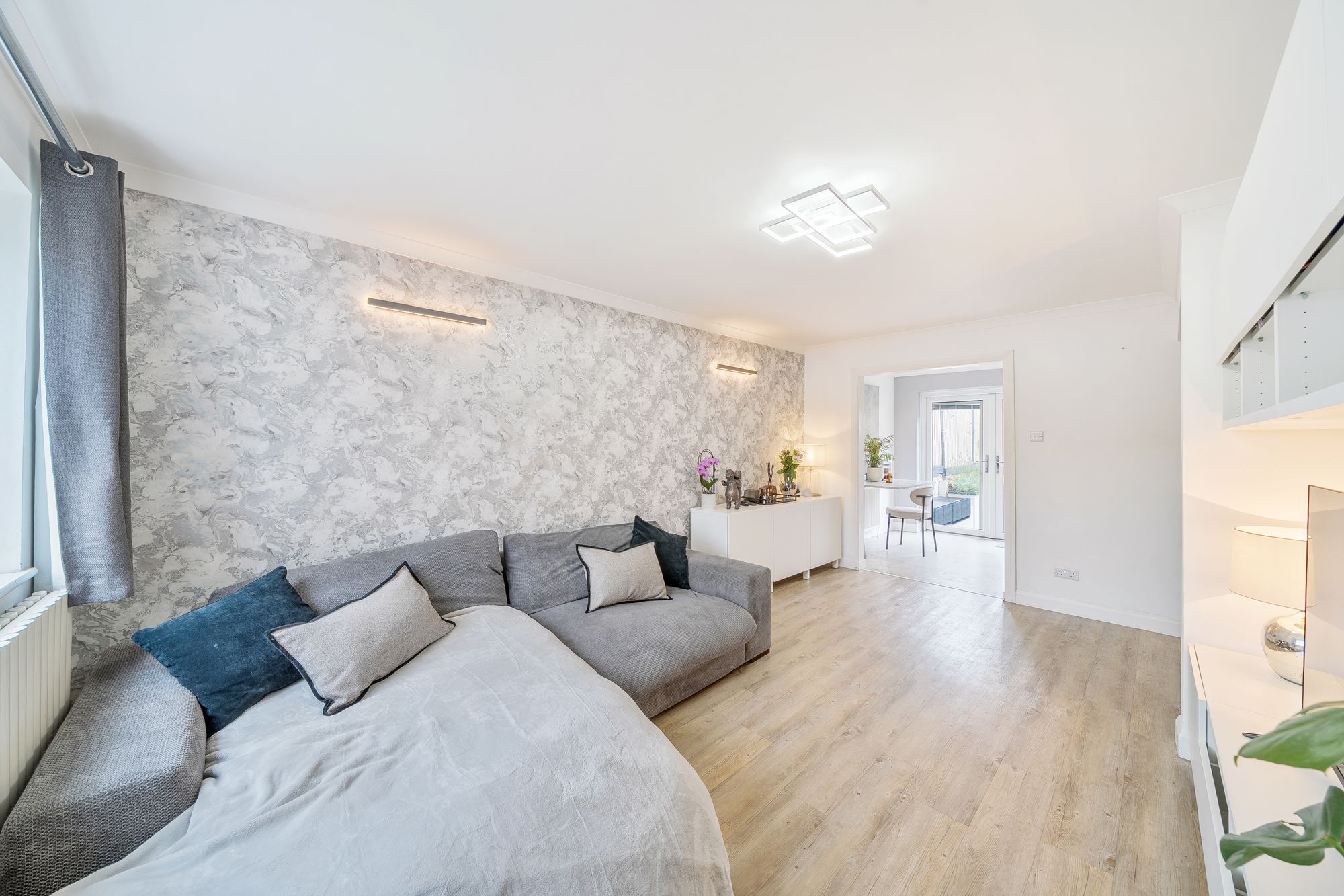 Upon entering the property, you are welcomed by a bright and airy hallway that leads to the open plan lounge and dining area. The lounge is well-proportioned, offering plenty of space for relaxation and entertainment. The eat-in kitchen boasts modern fixtures and fittings, providing a delightful workspace for any avid cook or a family seeking a practical and stylish layout. The dining area provides a wonderful space for family meals and gatherings. A dual aspect fill both rooms with an abundance of natural light, creating a warm and inviting atmosphere.