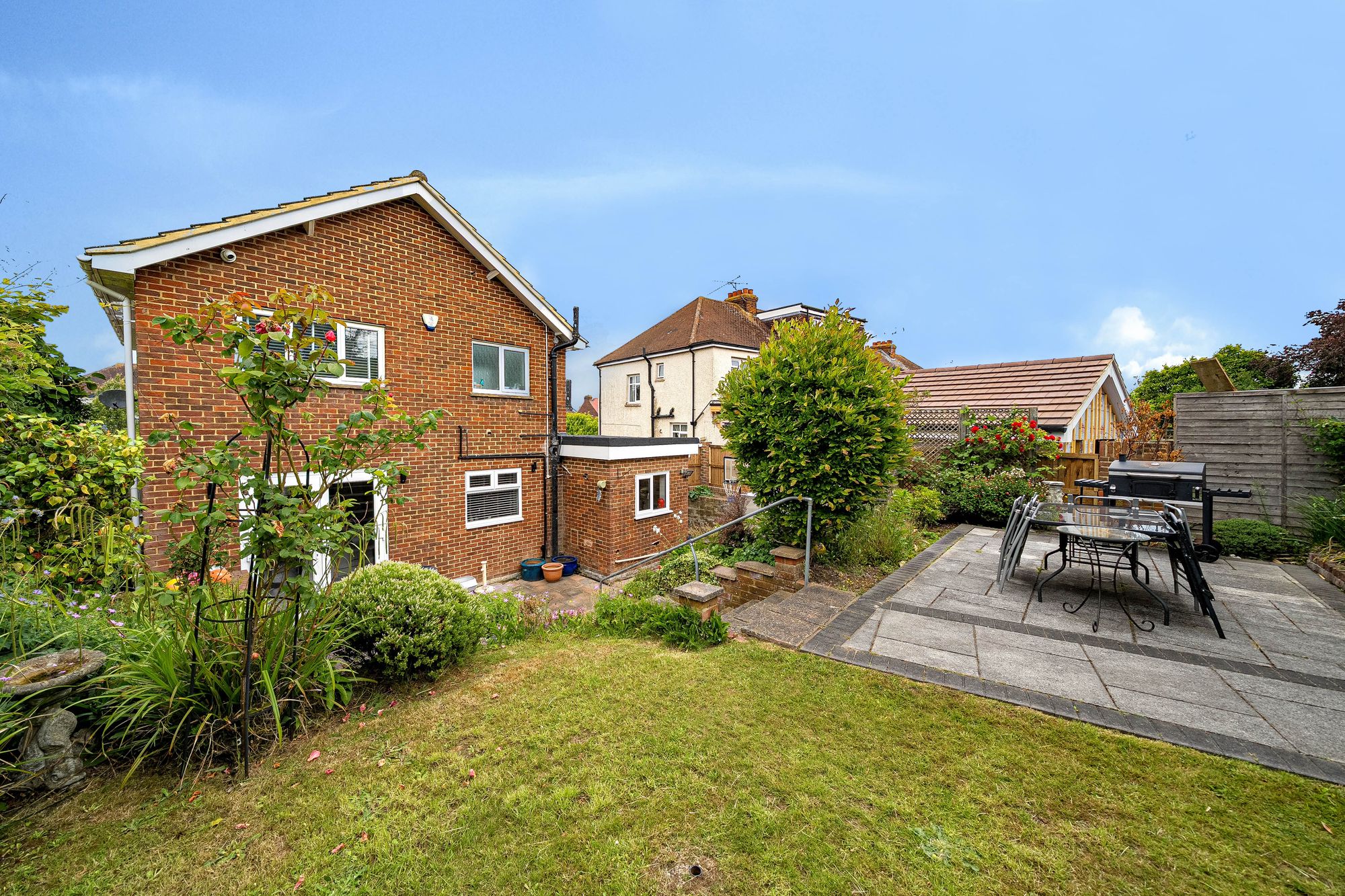 The generously sized garden, south facing, rear garden offers a serene outdoor setting, perfect for alfresco dining or simply unwinding amidst the natural surroundings. Offering both a laid to lawn space and two patio areas, the property caters for all the family. At the back of the garage there is a versatile space that would make an ideal snug or office from those that would like to work from home.