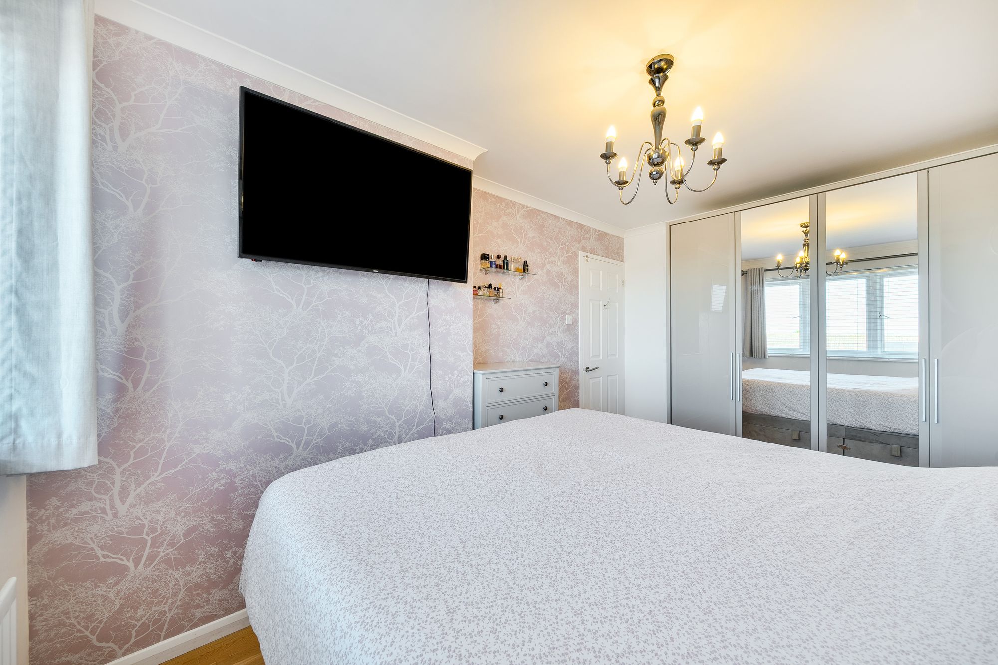 Inside, the property features a cosy, bright lounge complete with a stylish media unit, creating the perfect space to relax and unwind. To the rear of the home is a spacious eat-in kitchen diner, ideal for both everyday living and entertaining, with easy access through to a bright, versatile garden room overlooking the garden. Practicality is well considered on the ground floor with a convenient W/C and an additional storage room, providing valuable extra space for household essentials.
