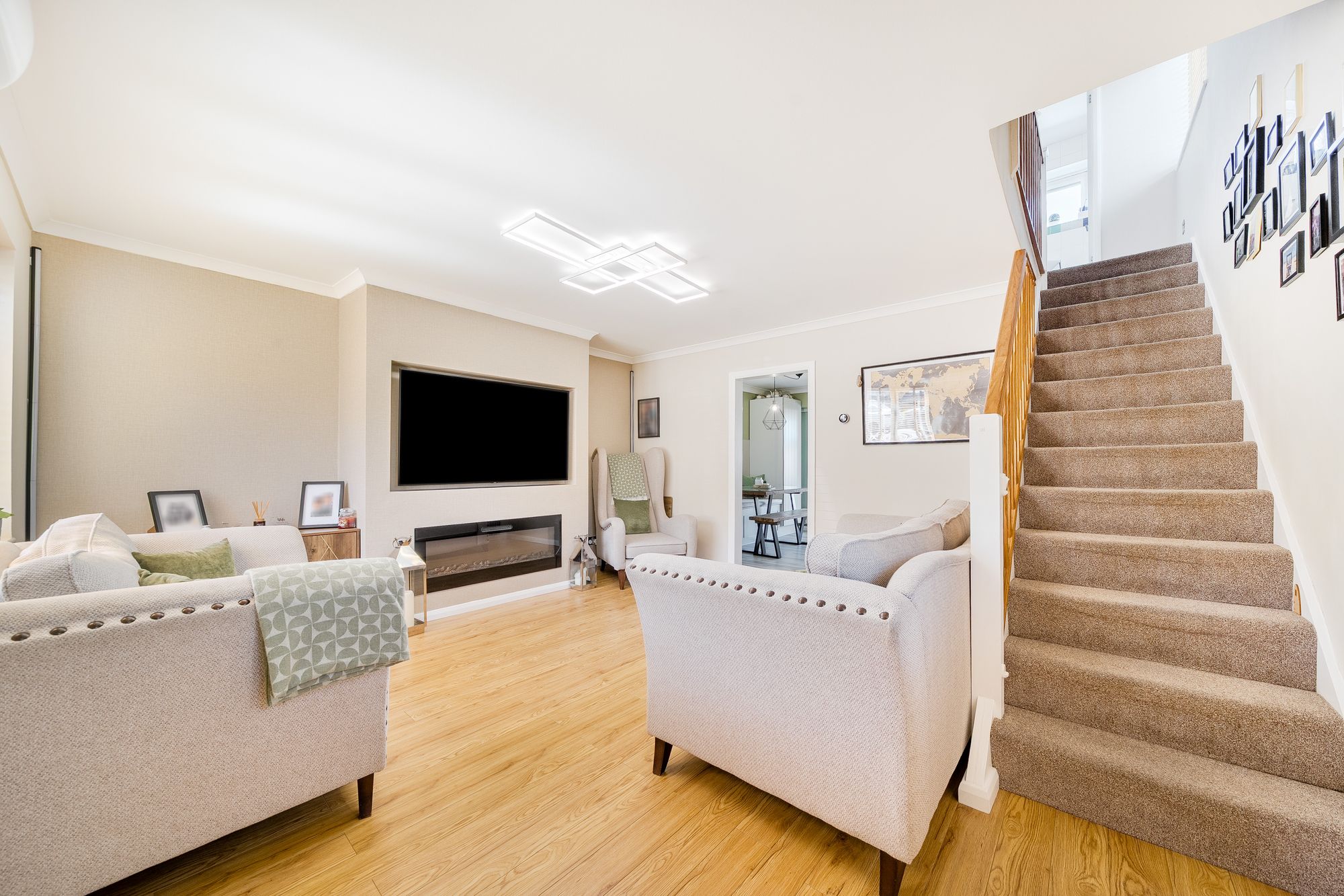 Upstairs, the property offers three bedrooms alongside a neutral family bathroom, ready for a new owner to personalise.