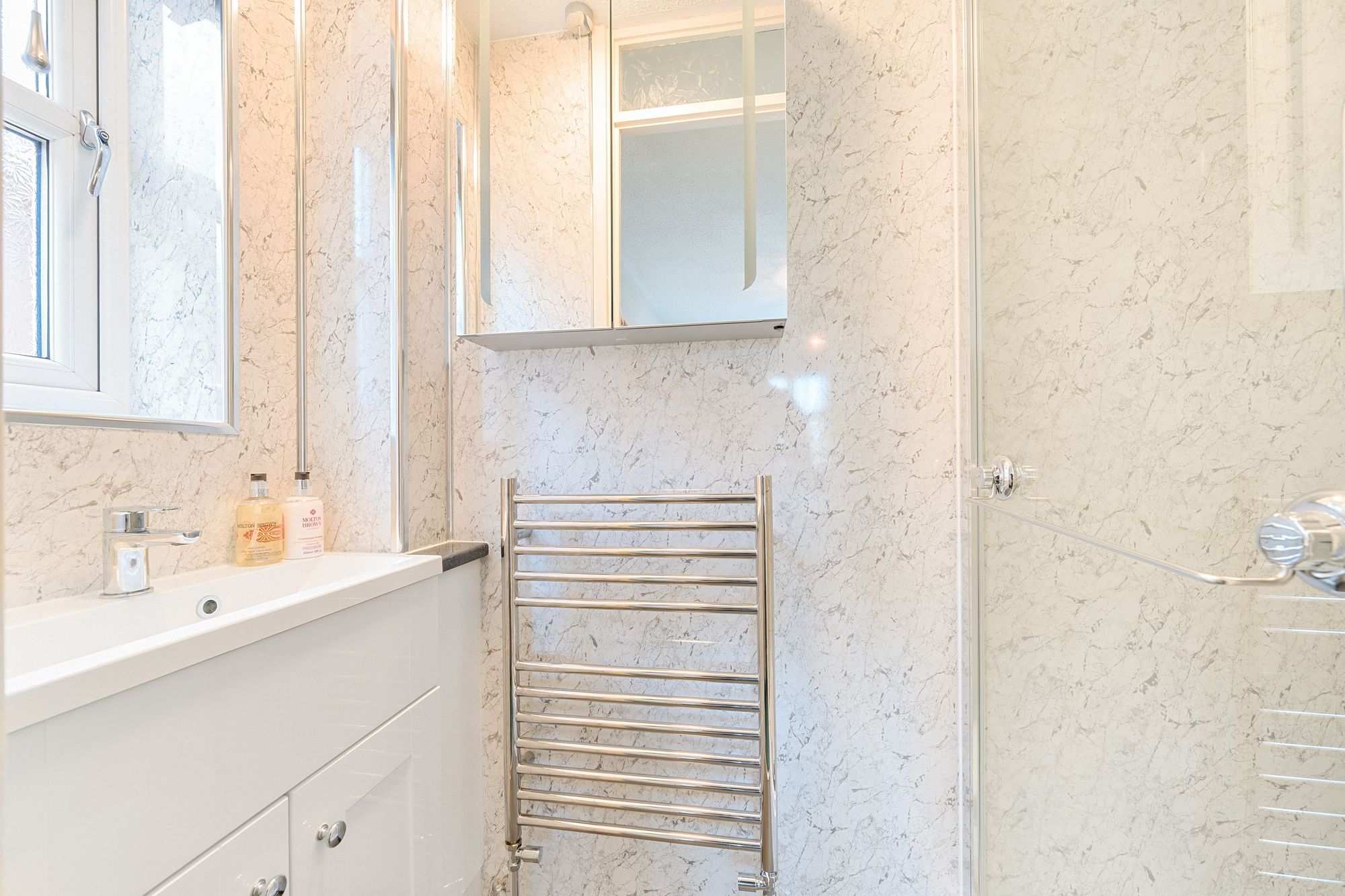 Ascending the stairs, you will be greeted be tastefully decorated bedrooms, each offering comfort and space. The principle bedroom is accompanied by a stylish en-suite, enhancing privacy and convenience. The two further bedrooms are serviced by the tastefully upgraded family bathroom with three-piece suite.
