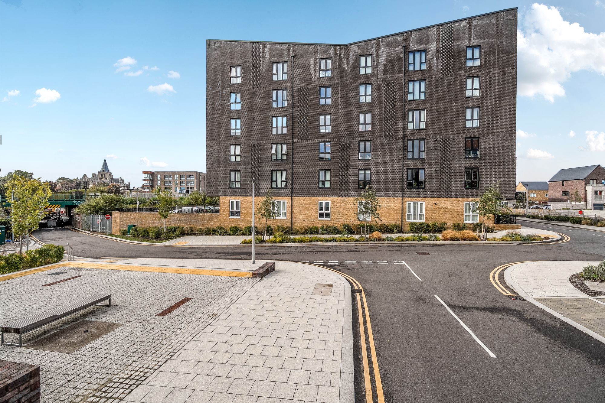 Corner plot in Rochester Riverside. Two bed, two bath apartment with open-plan living, private balcony with river views and parking. Close to Rochester train station, High Street and riverside walks.