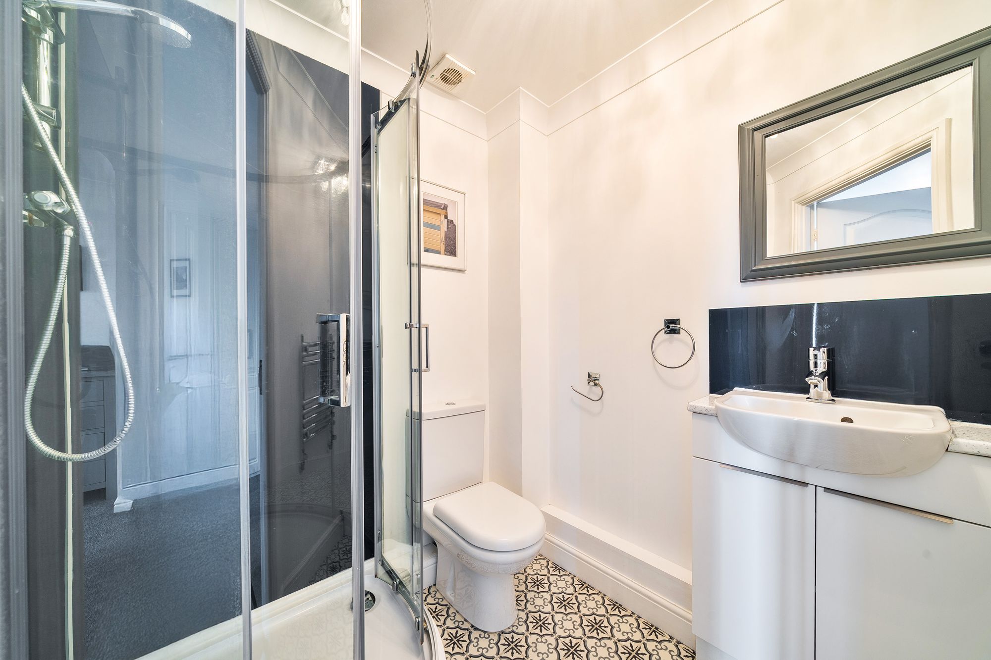 The top floor brings together two well-sized bedrooms, including a principal bedroom with its own en-suite shower room, alongside a fresh, modern family bathroom.