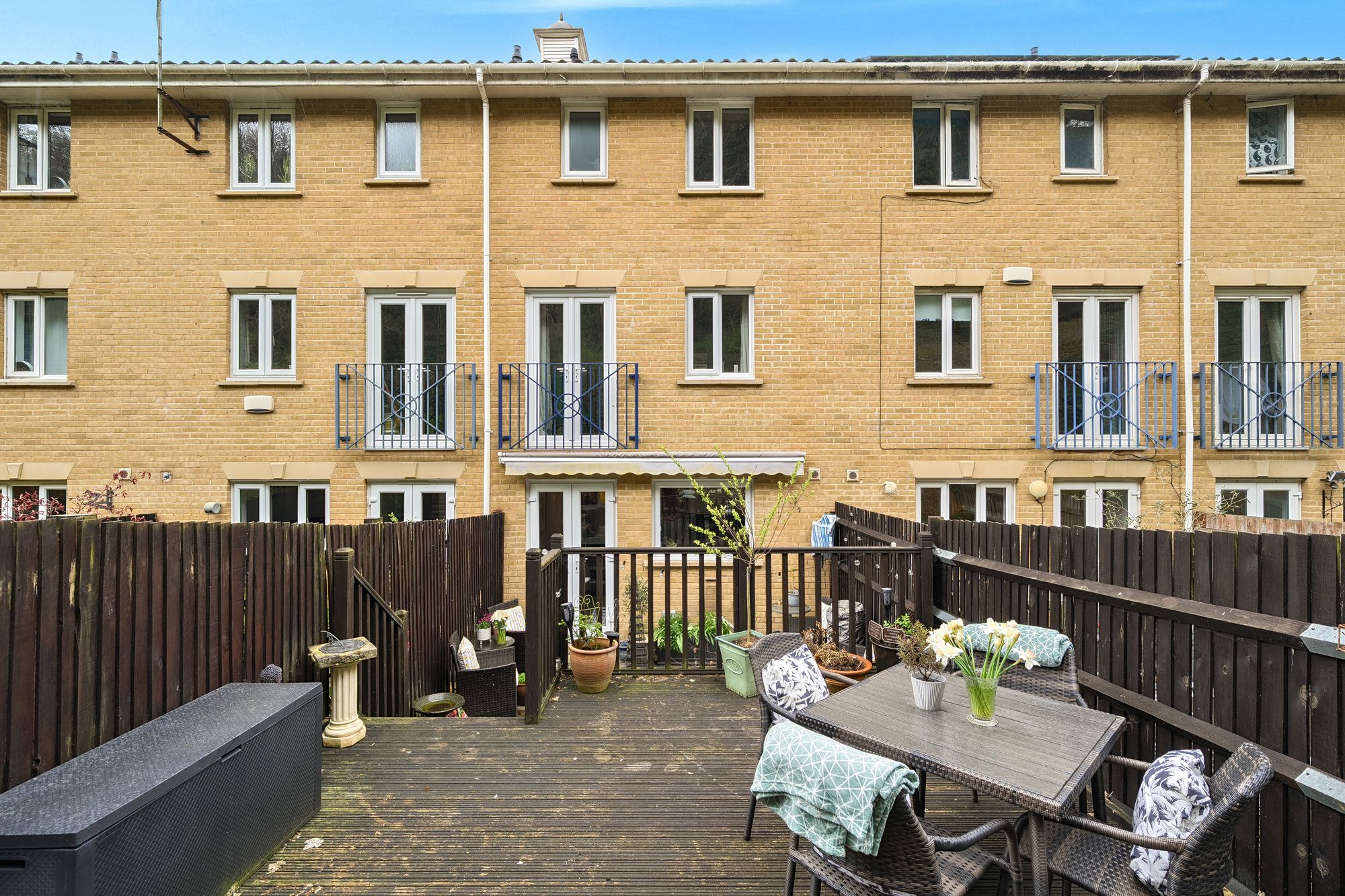 An upgraded three storey, three bedroom home over 1,100 sq ft with garden, balcony, garage and driveway. Quiet private setting near High Street and station, with parking, garage and fast London links.