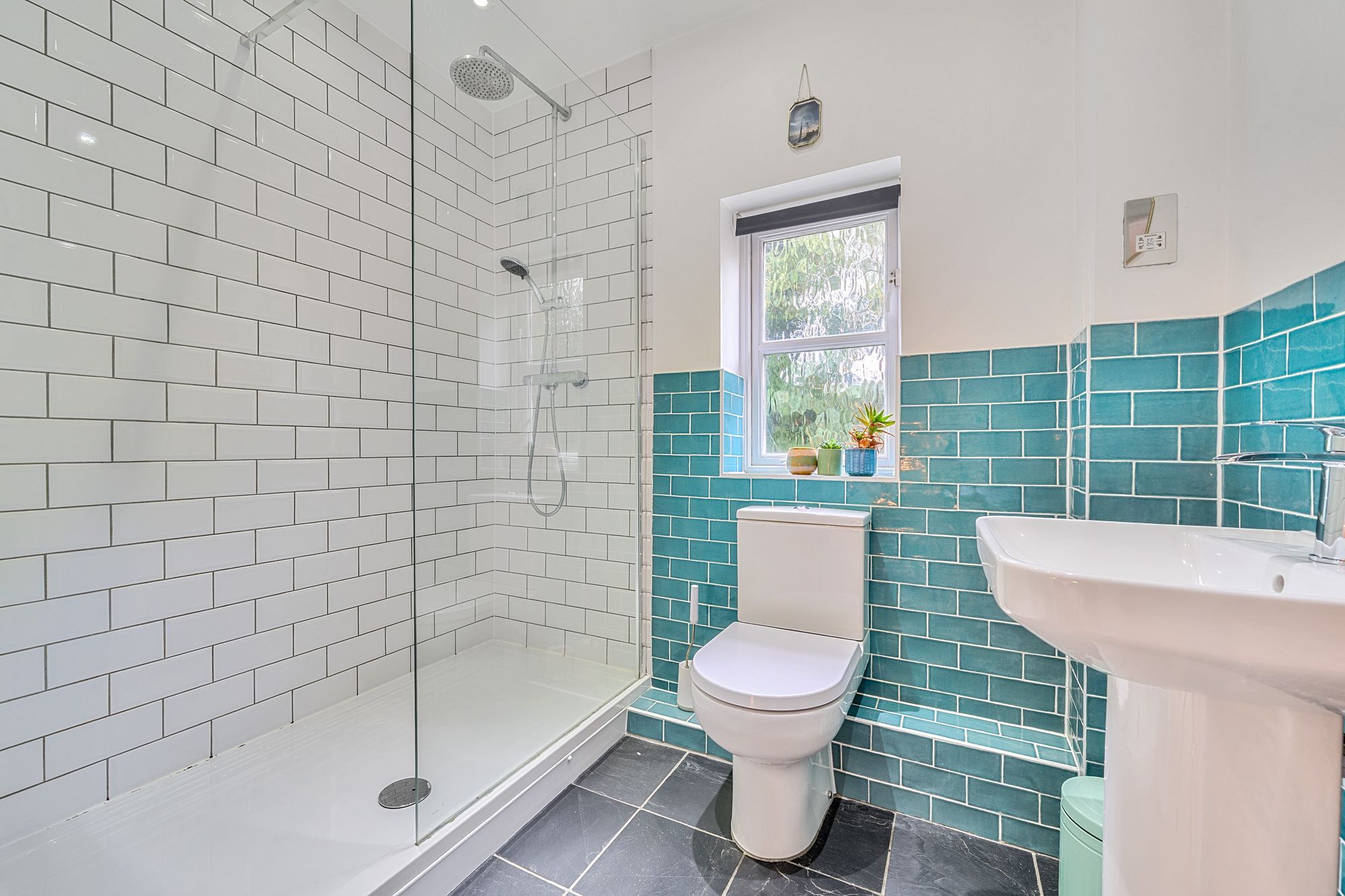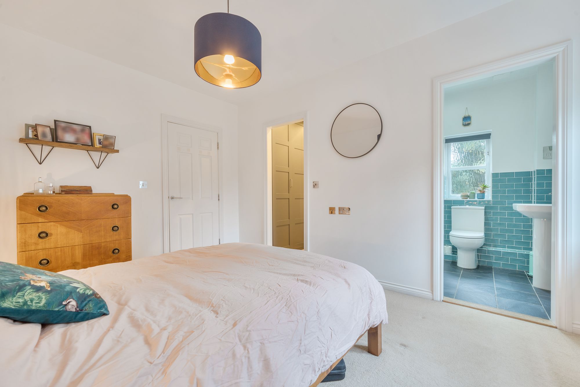 The second floor comprises three further bedrooms and a modern family bathroom. The principal bedroom enjoys its own private en-suite shower room and dressing area, creating a comfortable retreat away from the main living areas.