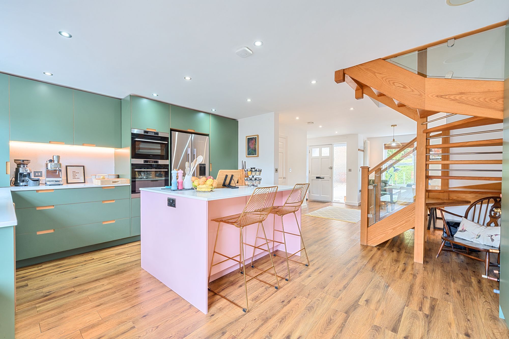 The ground floor centres around a recently upgraded, dual aspect open plan kitchen, dining, and living area and the convenience of a guest WC. This bright and versatile space is ideal for both entertaining and everyday family life, with under floor heating and doors opening directly onto the garden.