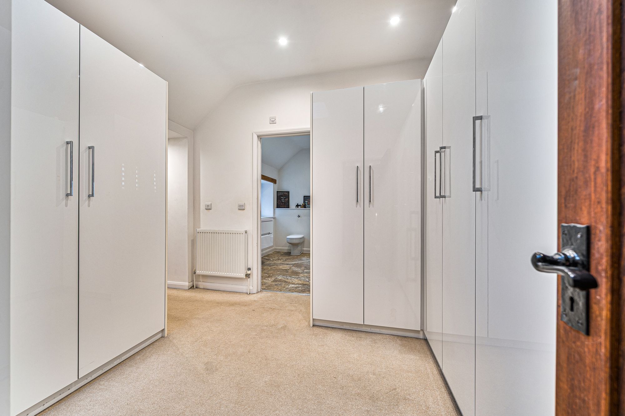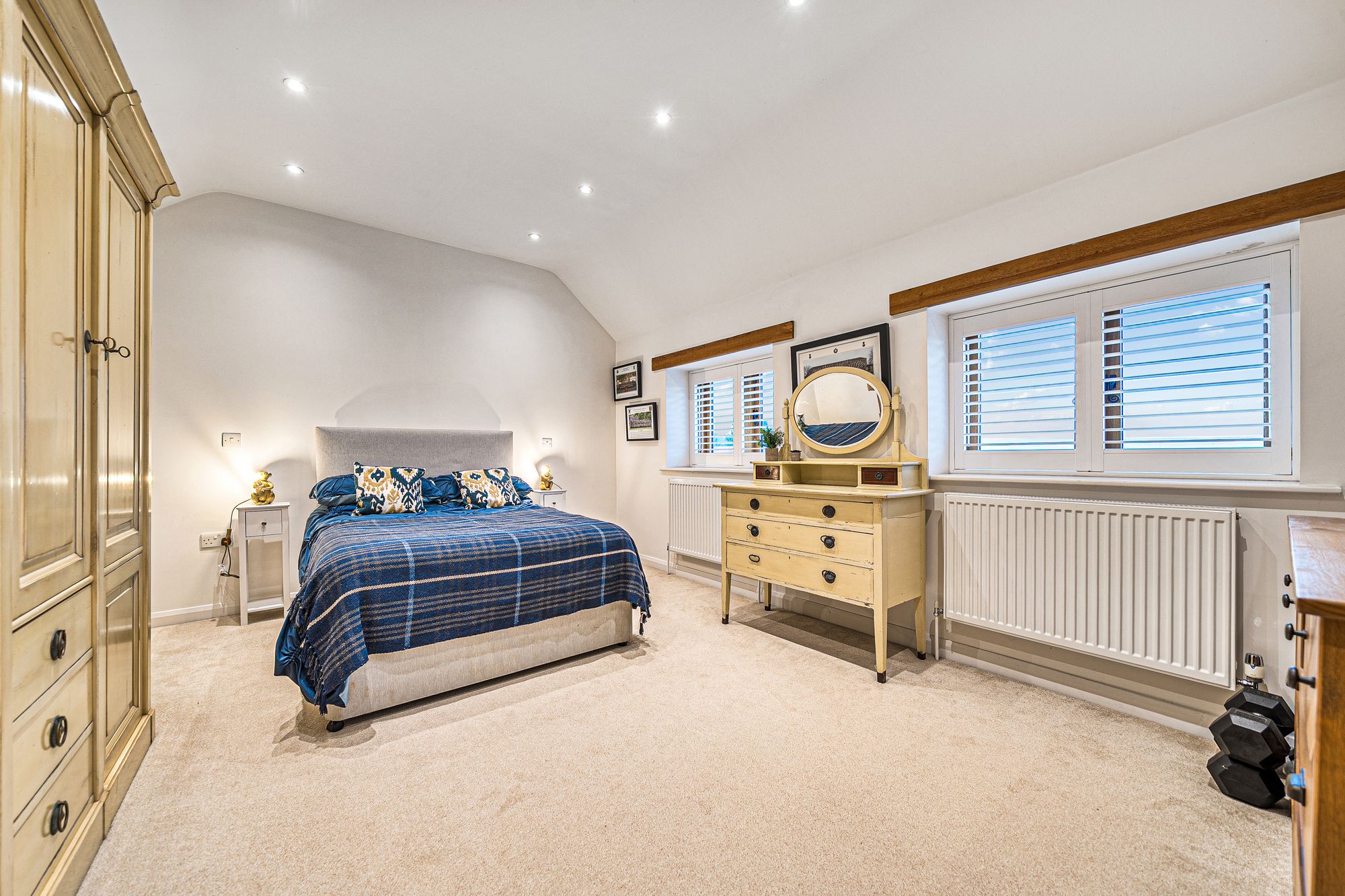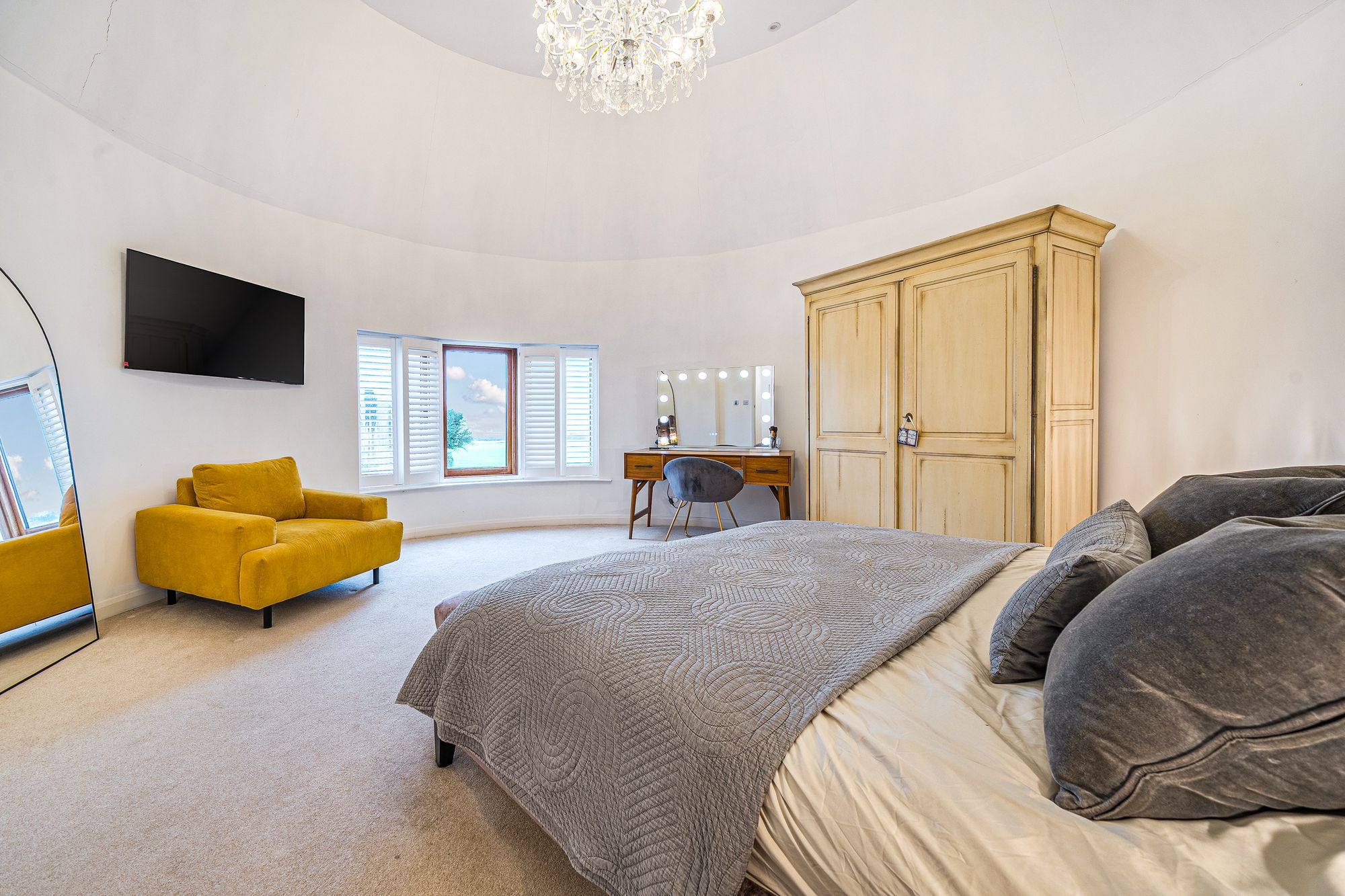 Upstairs, all six bedrooms are good-sized doubles, with five bathrooms keeping mornings easy. The principal roundel bedroom is set up as an impressive suite, with a dressing room leading through to a calm, private en-suite; a space that feels more hotel than house.