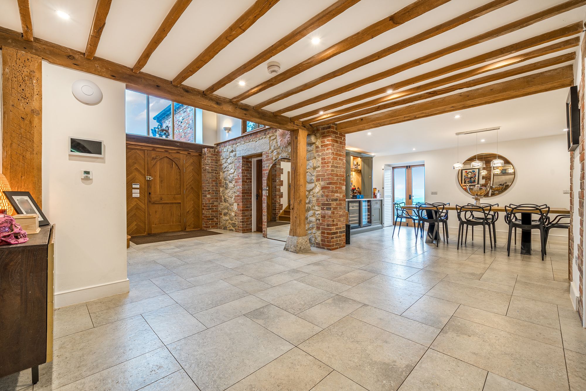 Framed by open countryside and set behind electric gates, this twin-roundel oast house offers 4,300 sq ft of well-balanced living space, with far-reaching views towards the North Downs. It’s the kind of place where mornings start slowly and evenings don’t feel rushed.