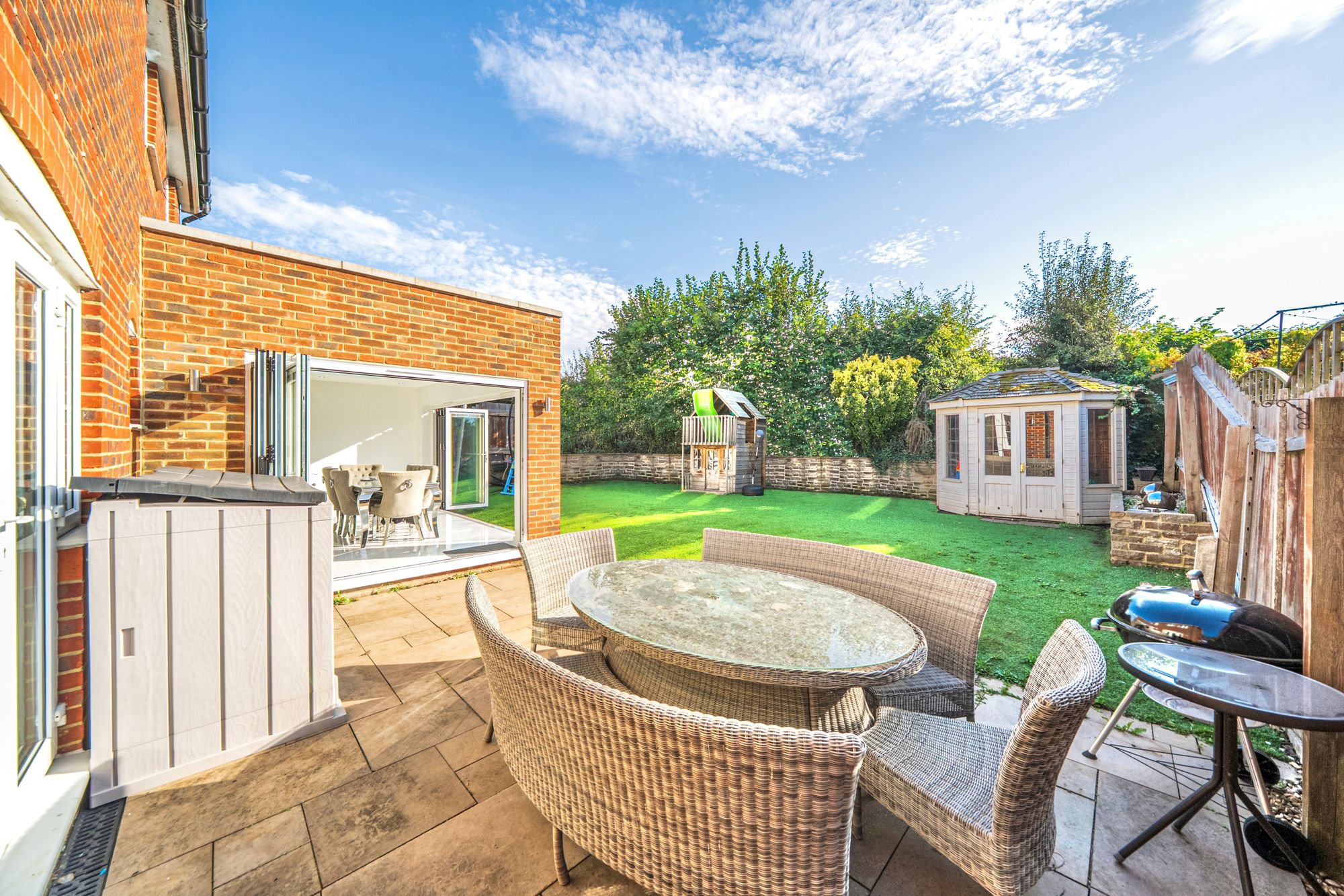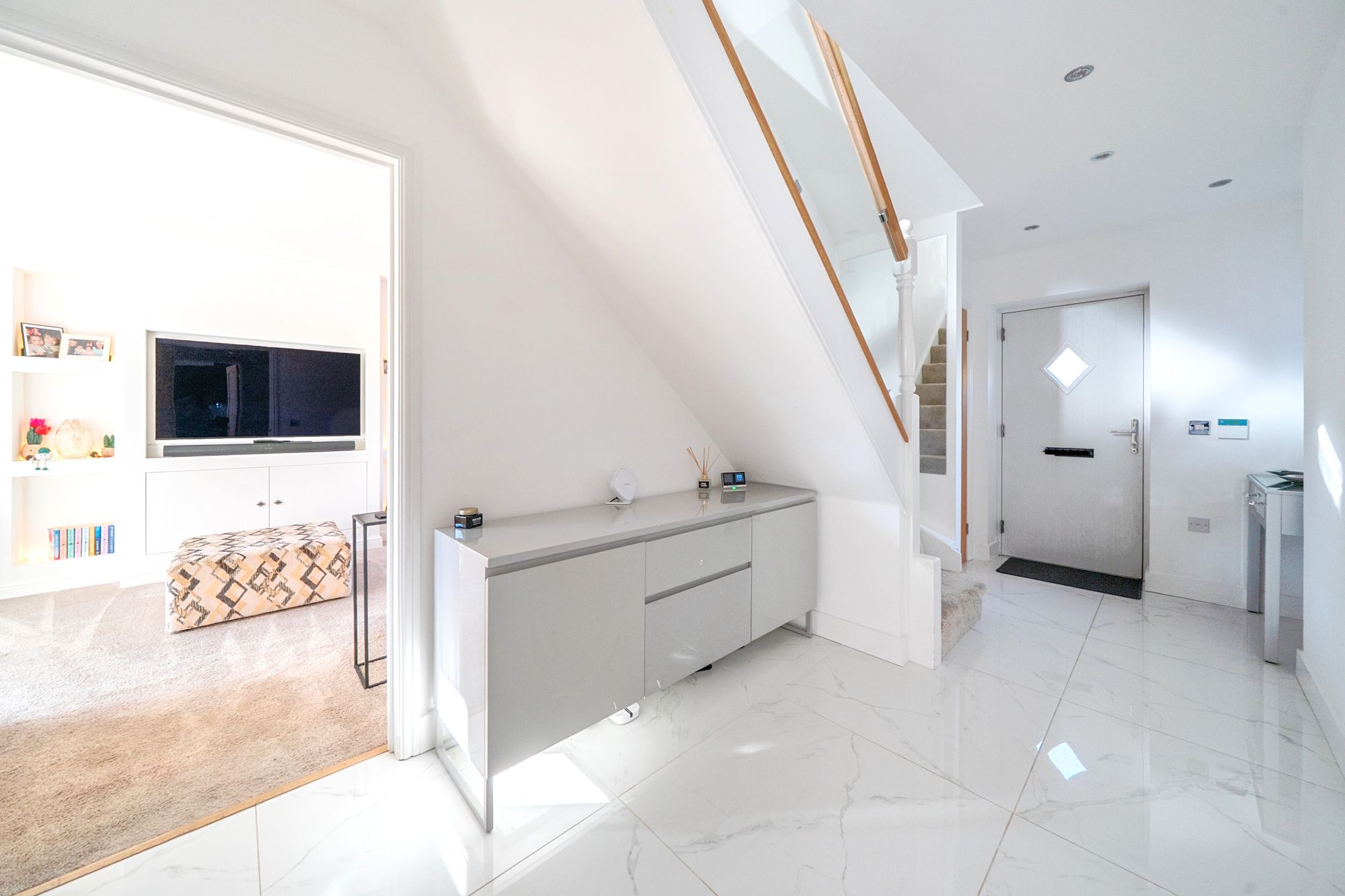 Externally and not to be overlooked is the low-maintenance, south-facing rear garden. Step outside through bi-fold doors from kitchen to garden and discover a private sanctuary for al fresco gatherings or tranquil moments under the sun. With both patio area and artificial lawn the garden caters for all the family. At the front of the property is a private drive and garage offering both parking and storage solutions.