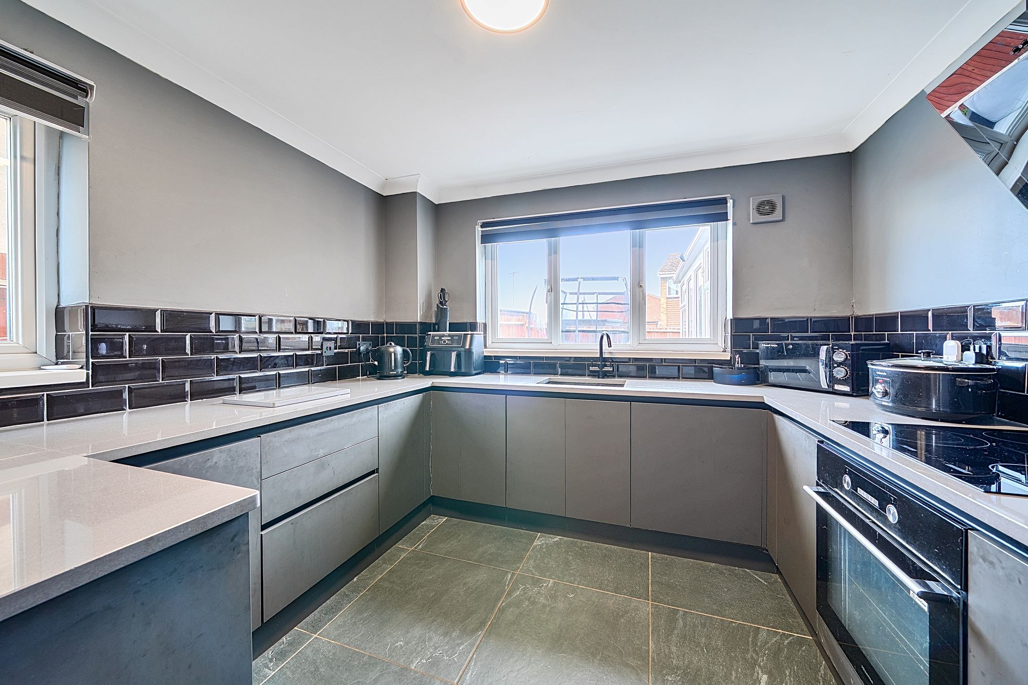 Upon entering the property, you are immediately greeted by the spacious and light-filled interior! The contemporary kitchen is located at the rear of the property, equipped with modern fittings, stone counter-tops and appliances, seamlessly connects to a separate utility room, ensuring convenience and practicality in daily living. The open-plan lounge/diner layout creates a versatile space for both intimate gatherings and larger social occasions, making it the heart of the home. With a versatile garden room the property offers flexibility allowing the space to serve as an additional reception room, home office or play room. If that wasn’t enough the property has the added benefit of a ground floor W/C.