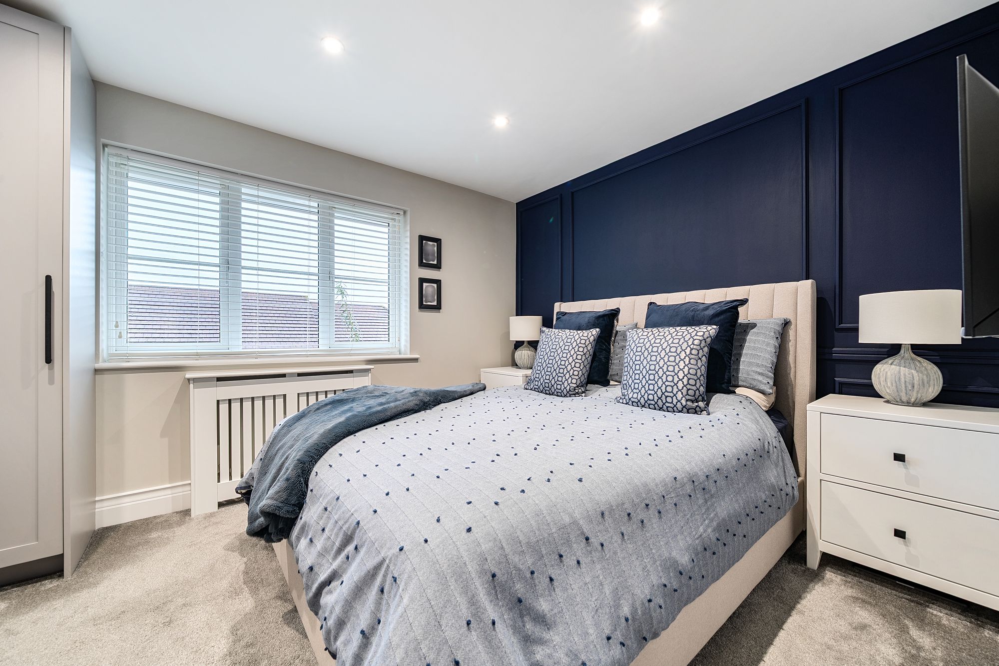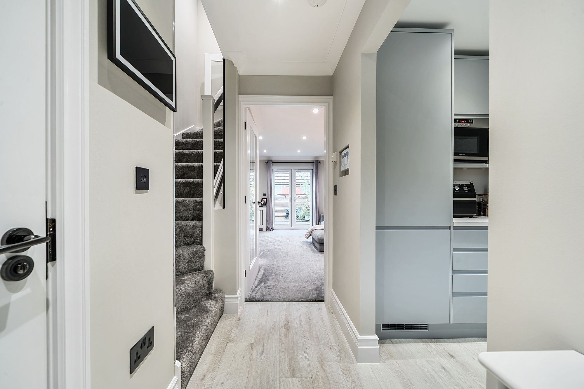 The first floor has the two double bedrooms both with bespoke fitted wardrobes and a bathroom giving the first floor the same luxury hotel vibes of the ground floor.