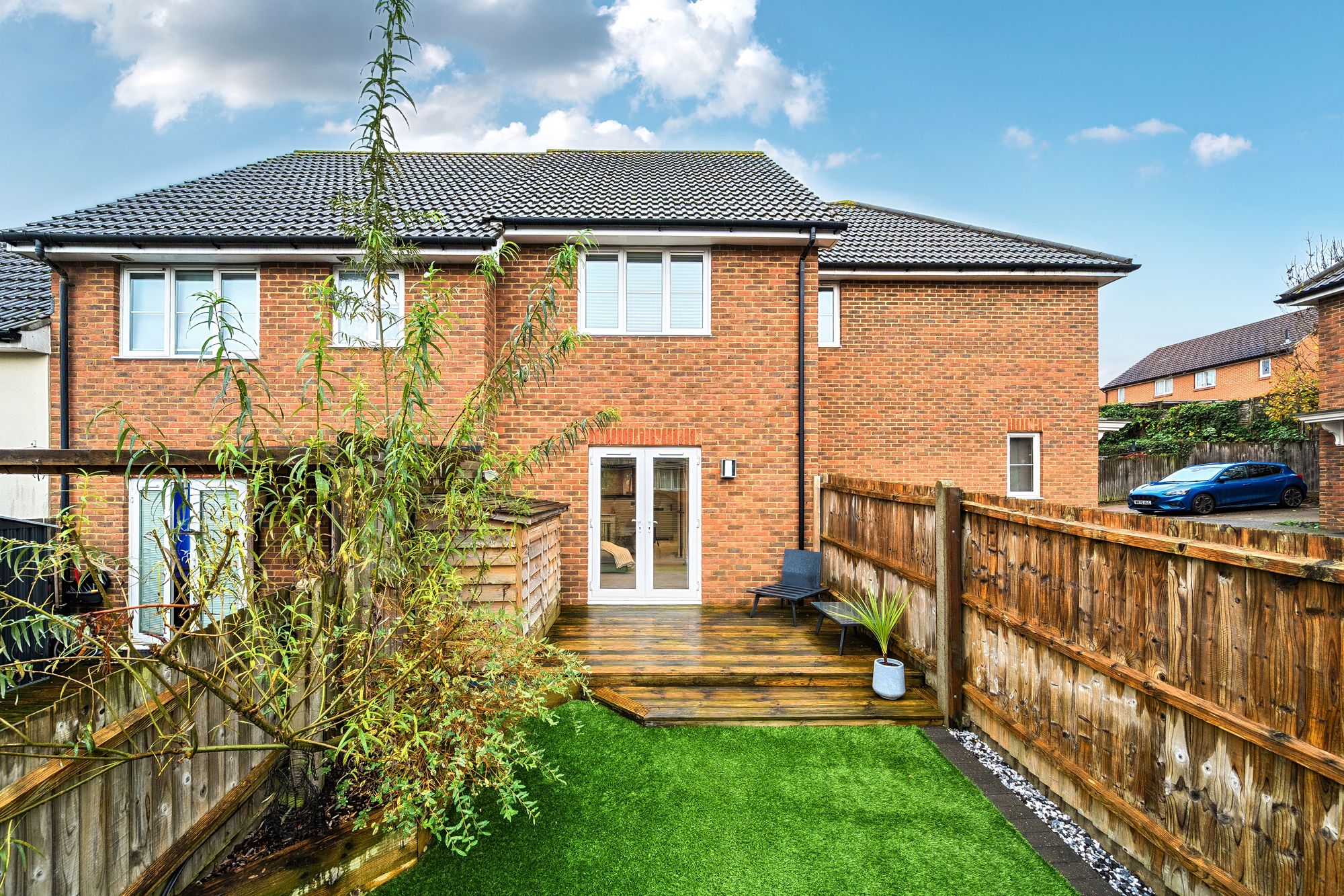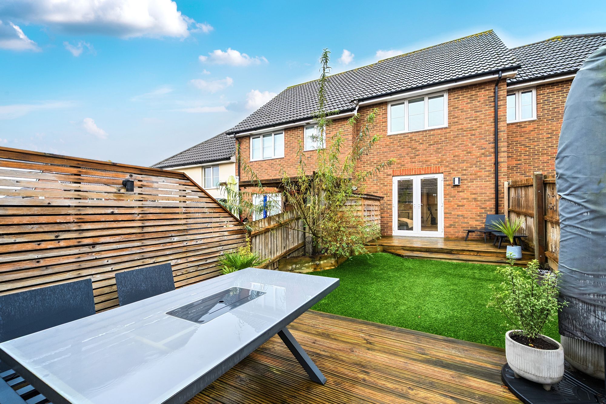 - Gorgeous garden space with decking, artificial lawn and rear acess