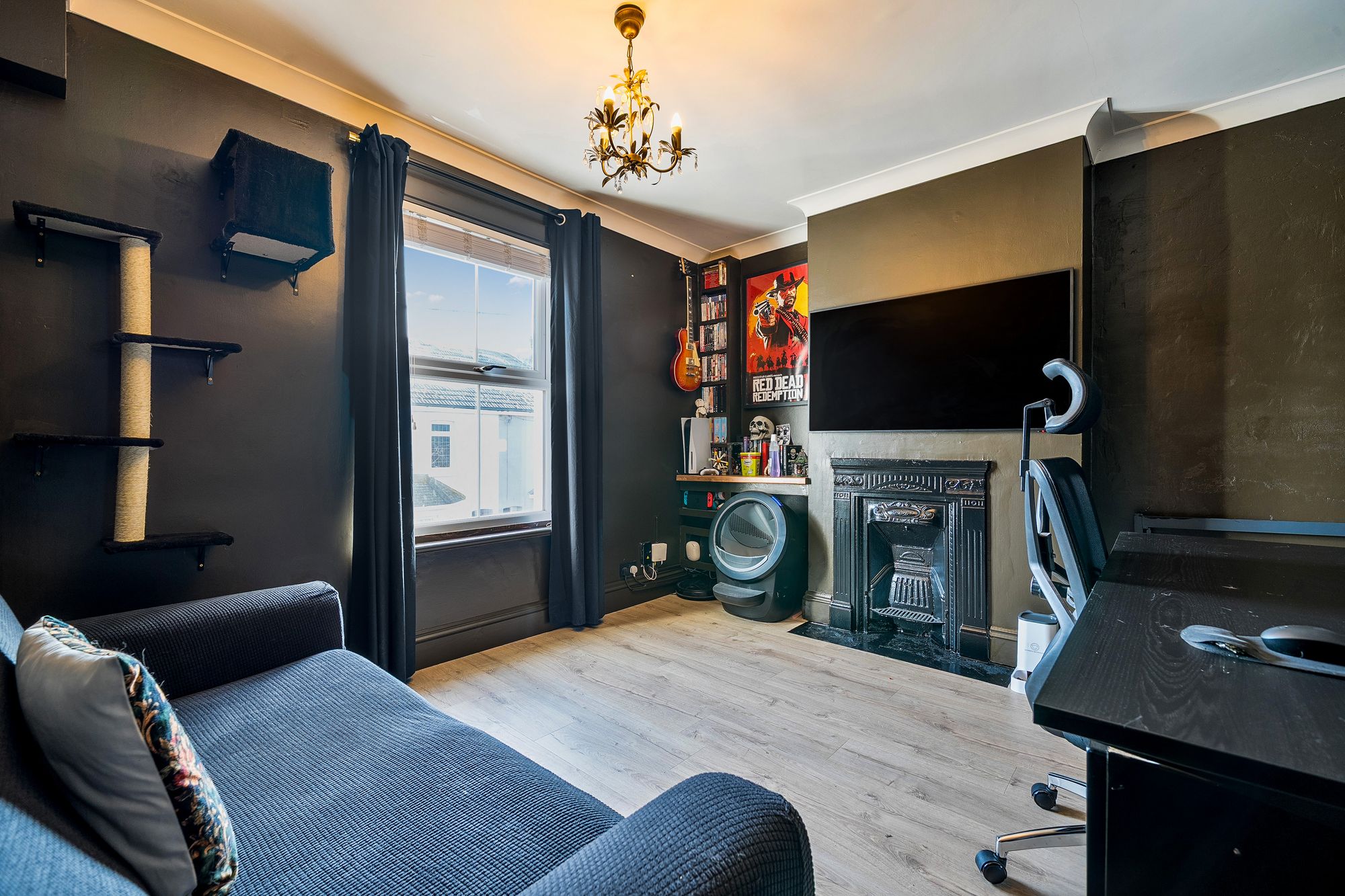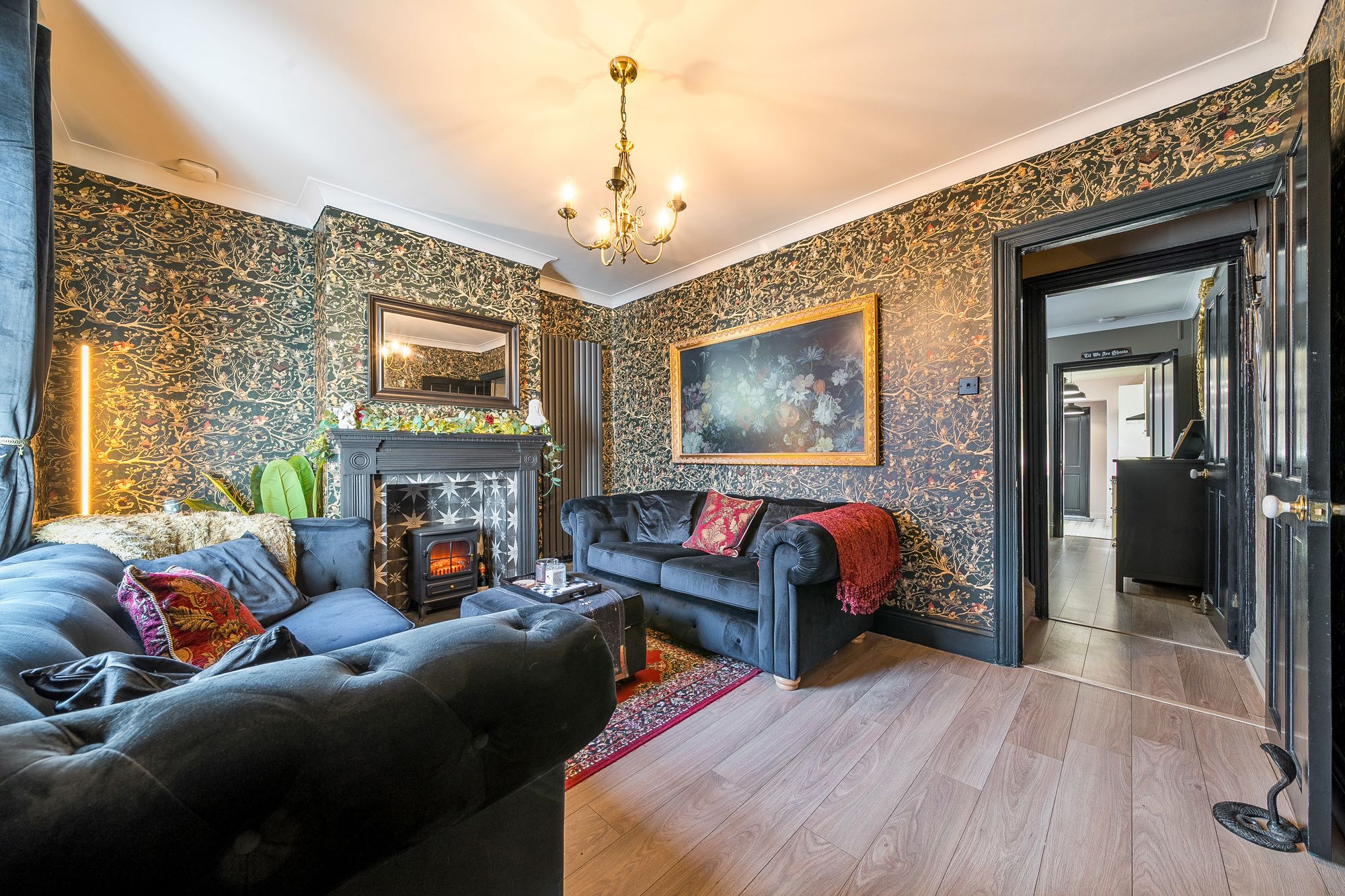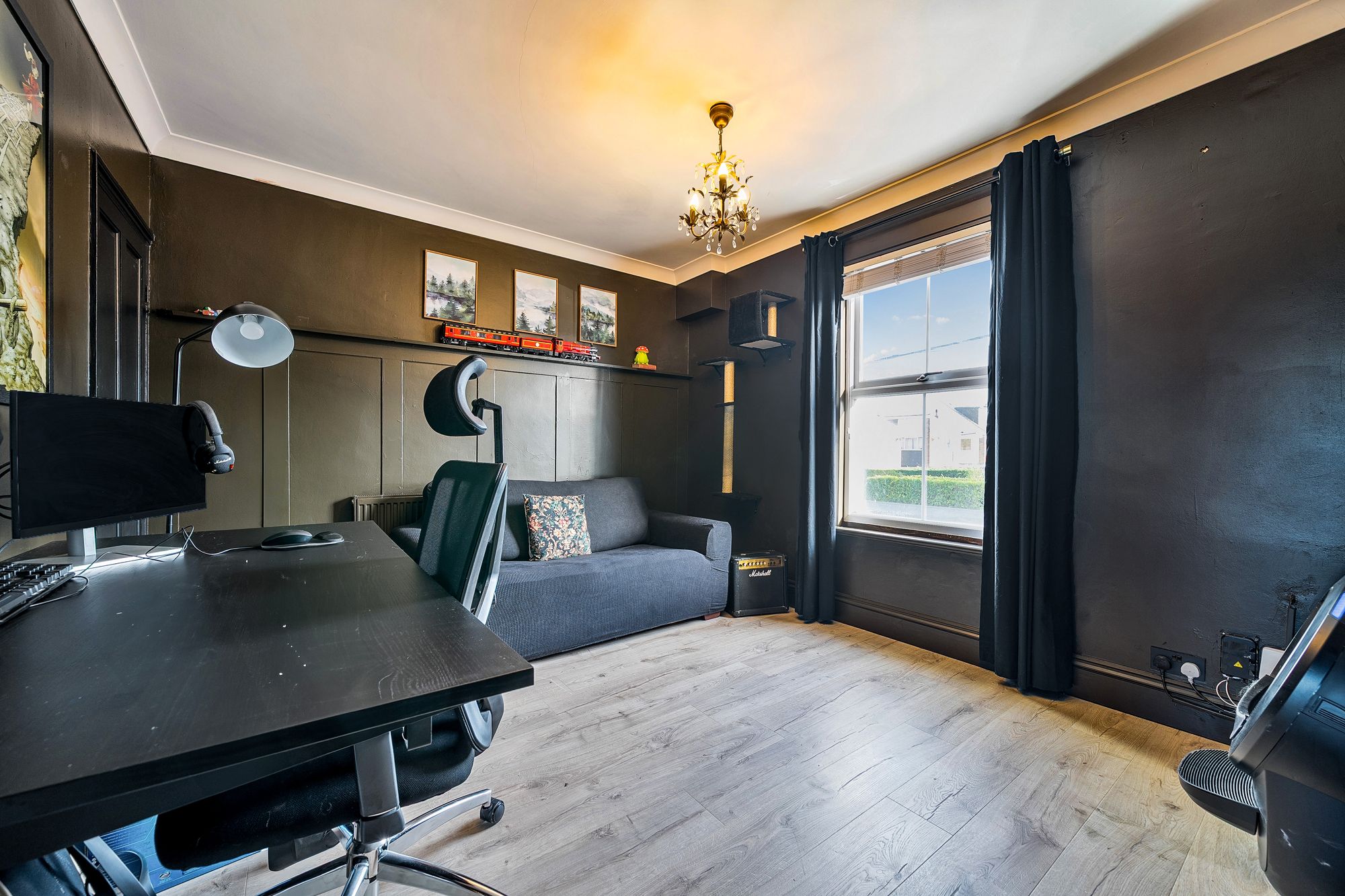 The ground floor is thoughtfully arranged with two versatile reception rooms, currently serving as a comfortable lounge and a separate dining area, providing flexible space for everyday living and entertaining. A contemporary fitted kitchen, set independently towards the rear of the property, complements the layout and is ideal for both practical use and modern lifestyles. Completing the ground floor is a stylish modern bathroom, finished with a three-piece suite.