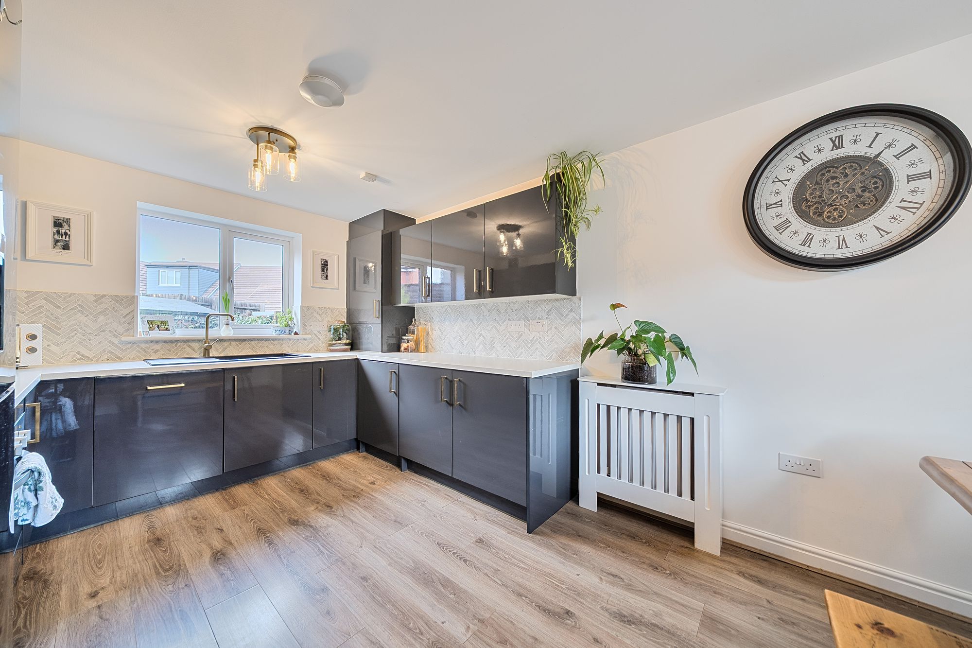 Upstairs, there are four good-sized bedrooms. The main bedroom comes with fitted storage and it’s own en suite shower room, while the remaining bedrooms are served by a sleek family bathroom. Throughout the house, the décor is fresh and neutral, with quality flooring and a finish that will suit a wide range of tastes.
