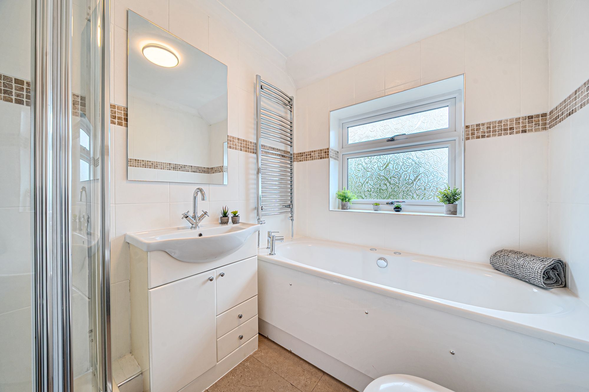 Inside, every detail has been considered. Fresh flooring elevates the living space, while a new boiler installed in 2022 (with a six-year warranty) provides peace of mind. The ground floor includes a handy cloakroom, and upstairs you’ll find a stylish bathroom plus an ensuite in the principal bedroom for a touch of luxury.