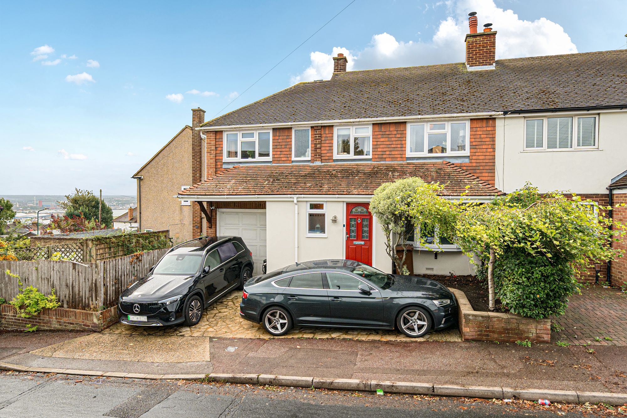 A four bedroom, two bath, semi-detached home with driveway for two cars, garage, and a sunny south-facing garden. Ensuite master, upgraded throughout, close to Strood Station, schools, and shops.
