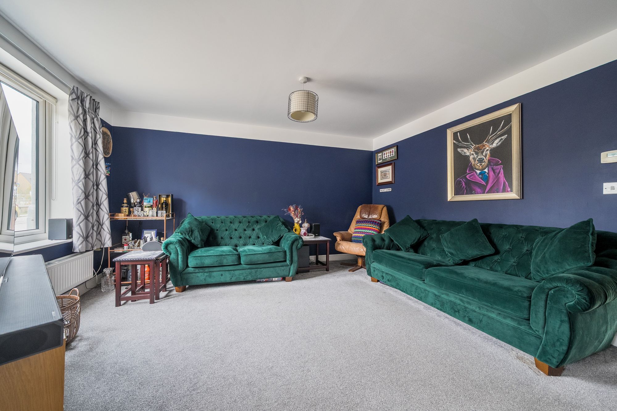 The low-maintenance, easterly-facing, landscaped rear garden provides a tranquil outdoor retreat, ideal for enjoying moments of relaxation. A private drive with EV charger and garage offer convenient parking solutions, adding to the practicality of this impressive property.